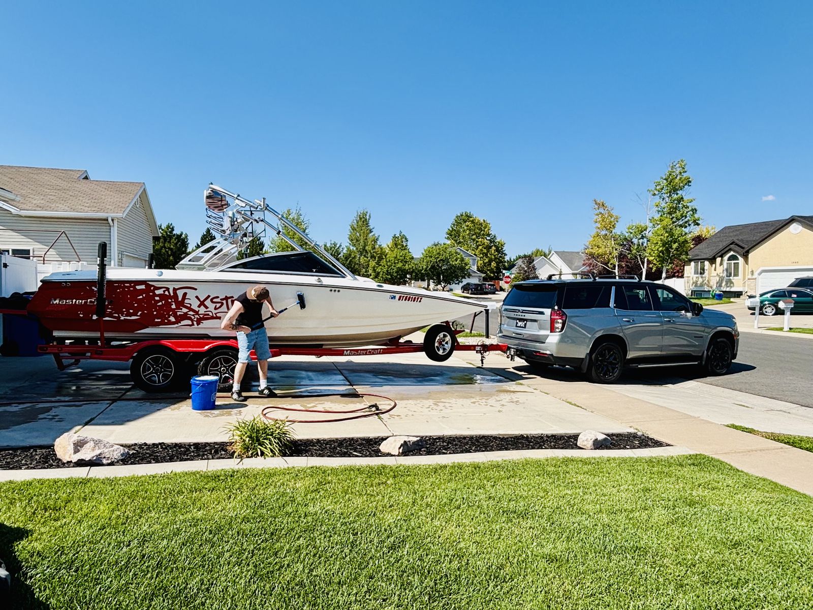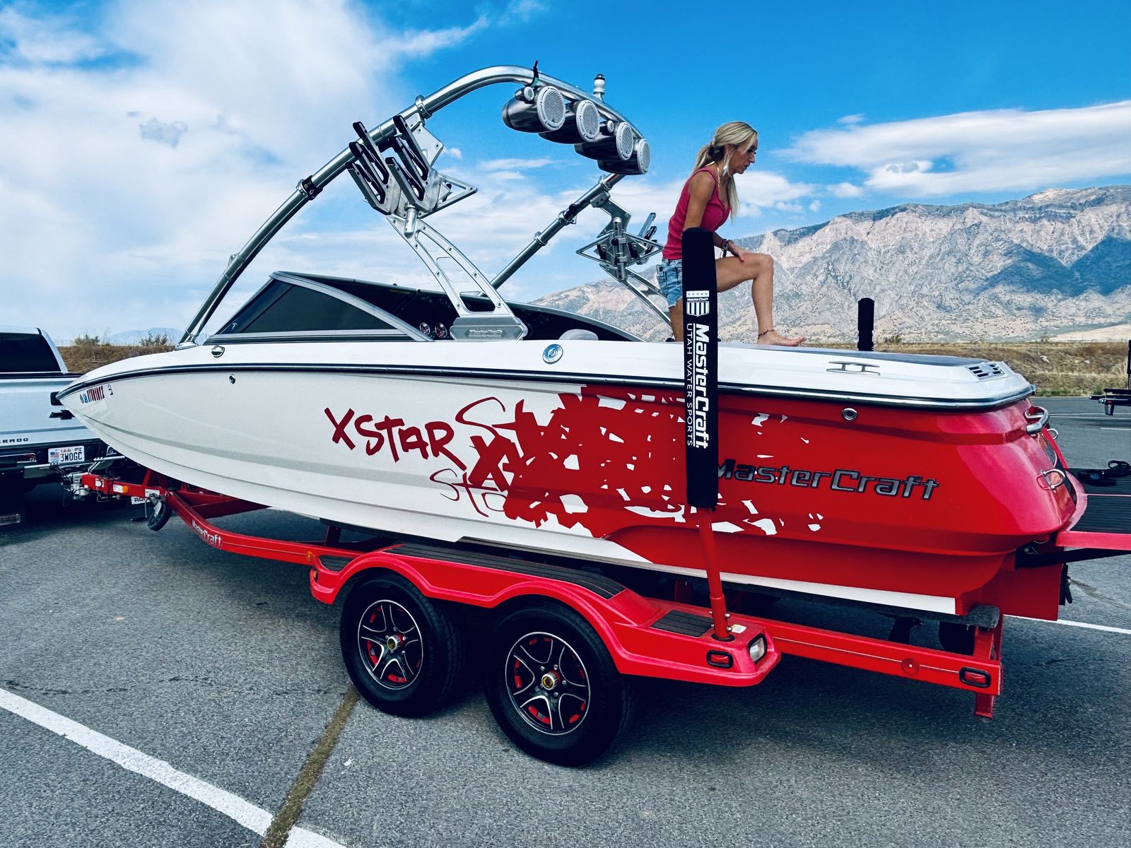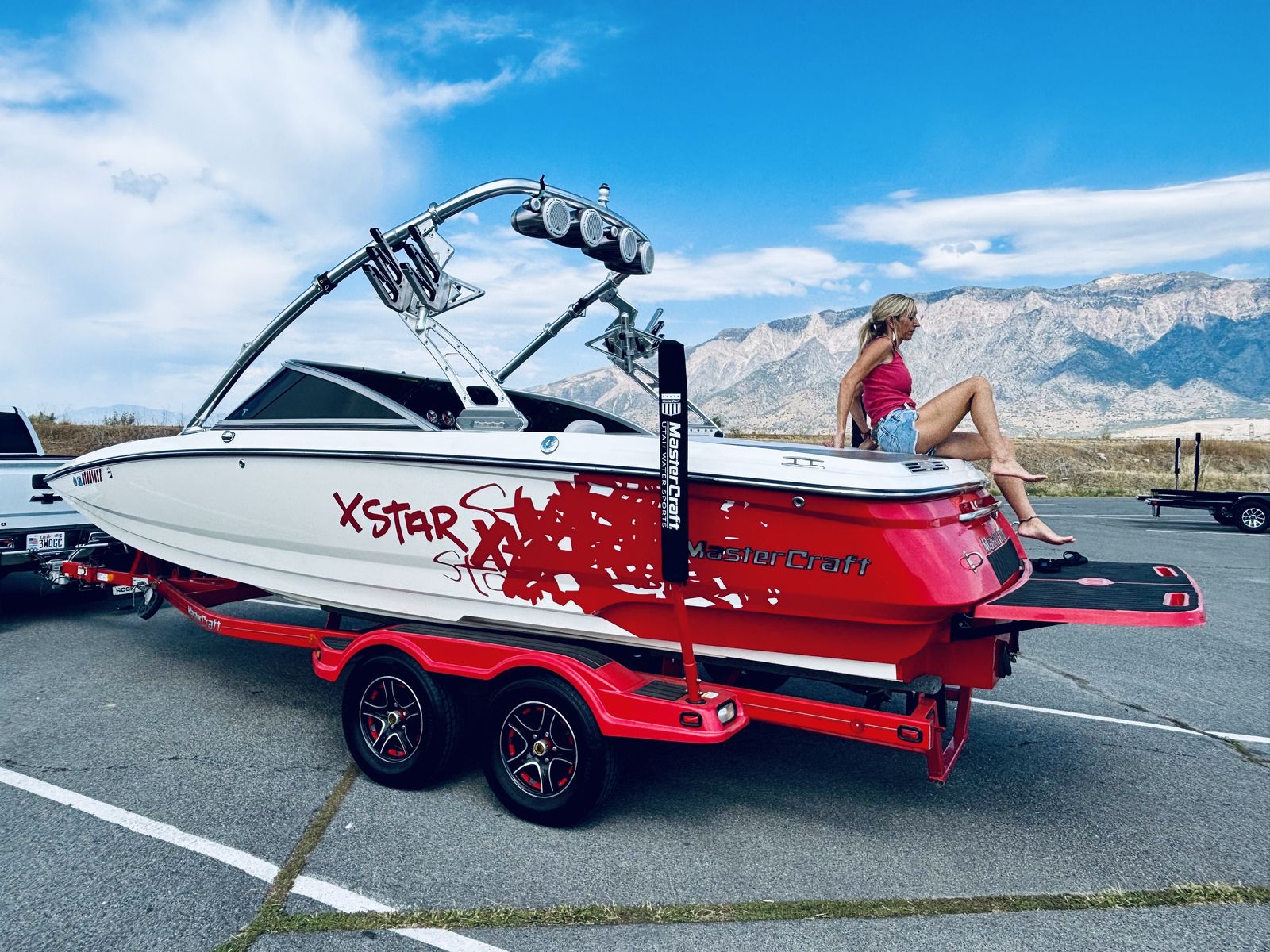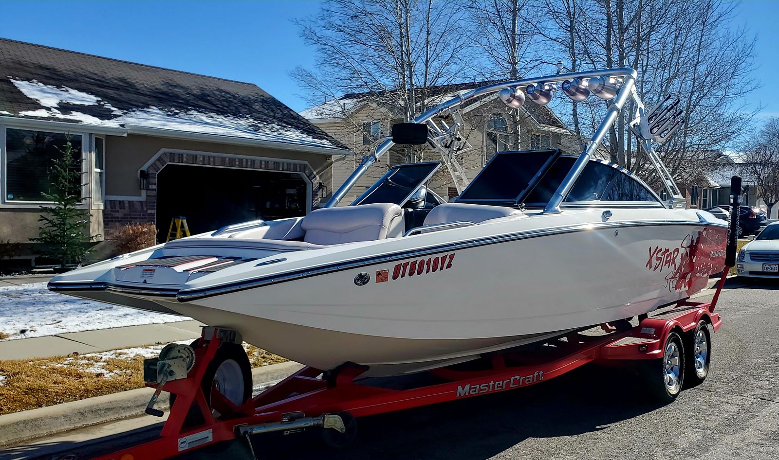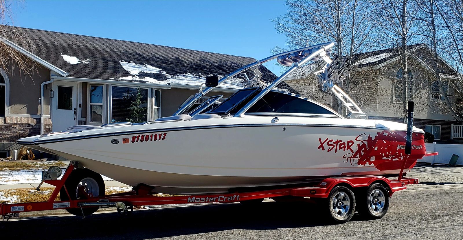 Well this is a bittersweet sale…We have a 2006 meticulously kept MASTERCRAFT X-STAR with 530 ish hours. Probably the cleanest and most well maintained boat 06 out there. Obviously it will have a little thing here or there but for the most part she is gorgeous inside and out. She is for sale because we decided on a pool for our family which will work better for us, but we will miss the lake and those memories, but excited for our new adventures. This a 22.5 foot wakeboard/surf boat. It does have ballast tanks and also extra fatsacs for the back. Beautiful white, gray, black and red interior, no holes. Heater, JBL sound system with 4 tower speakers. 2 new batteries, surfboards and wakeboard can be included with purchase price. After market wheels, tires have tons of life left. Removable swim deck if you need extra room to park in the garage. Only issues because of age were a couple sensors that Mastercraft took care of, new impeller end of last year. Call or text Chad for more info or questions. Please no low ballers.