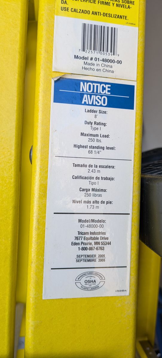 "Selling a Huskey 8-foot “A” frame ladder (model 01-48000-00). In excellent condition with no issues. Asking $75.00 cash only."
