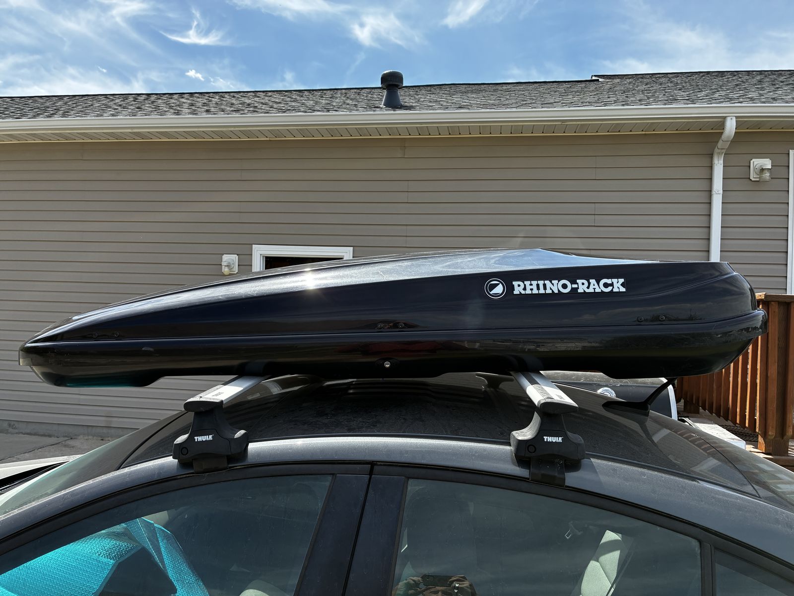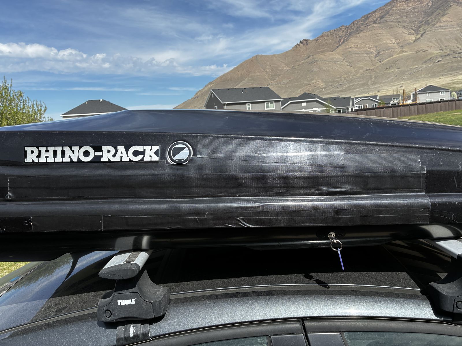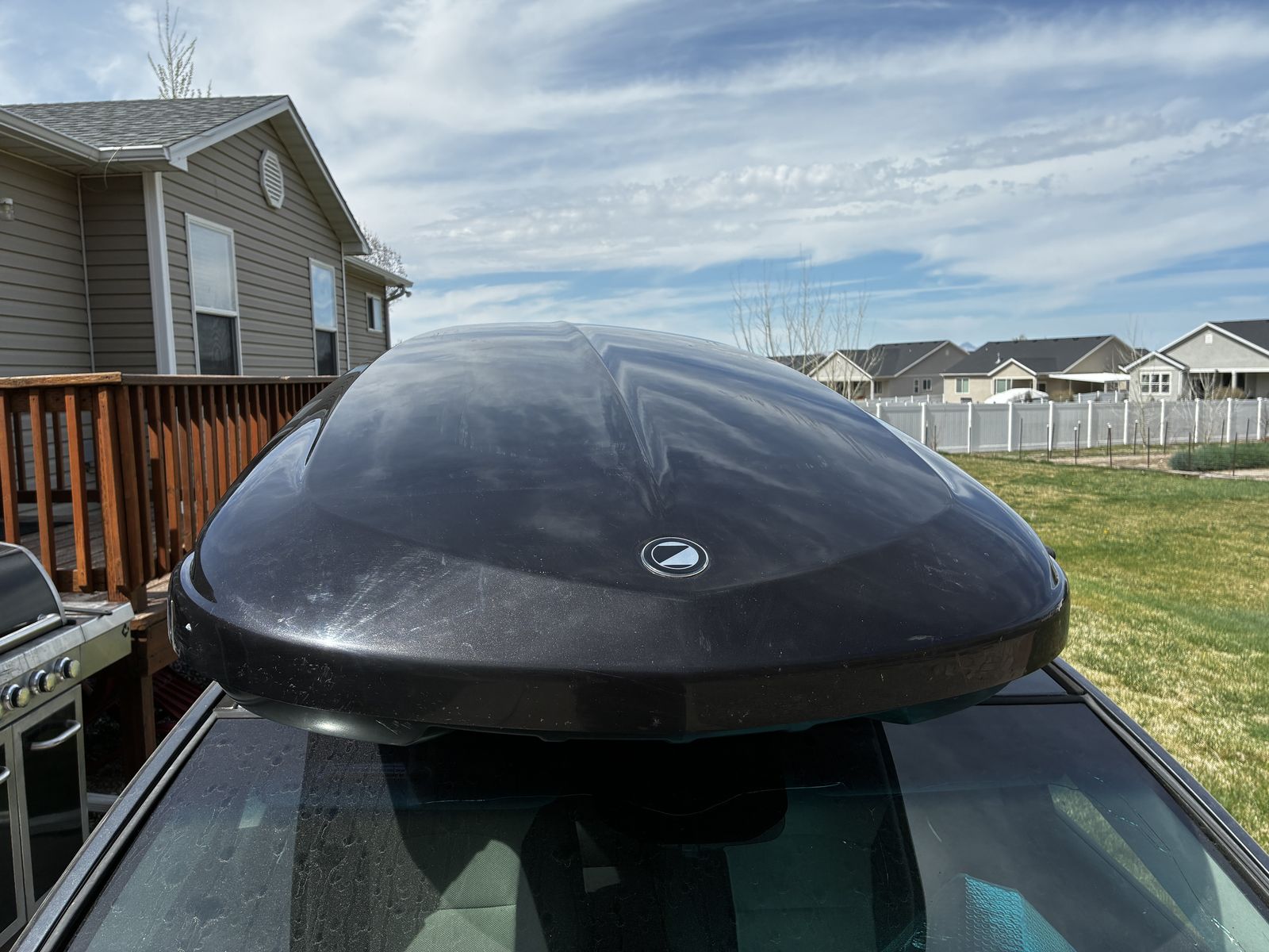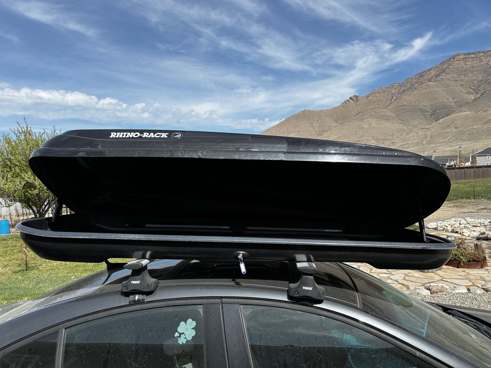 PayPalRead carefully: 15.5 cubic feet. 85" long, 35" wide, 15" tall. Includes key and modular feet/clamps (easy to to mount & remove). A goose committed hari-kiri somewhere on I-80 and cracked the side significantly. It has been taped with heavy duty duct tape. Locks fine but only opens from one side (the goose side, oddly). The other lock could probably be fixed. May be possible to repair via plastic welding. OBO