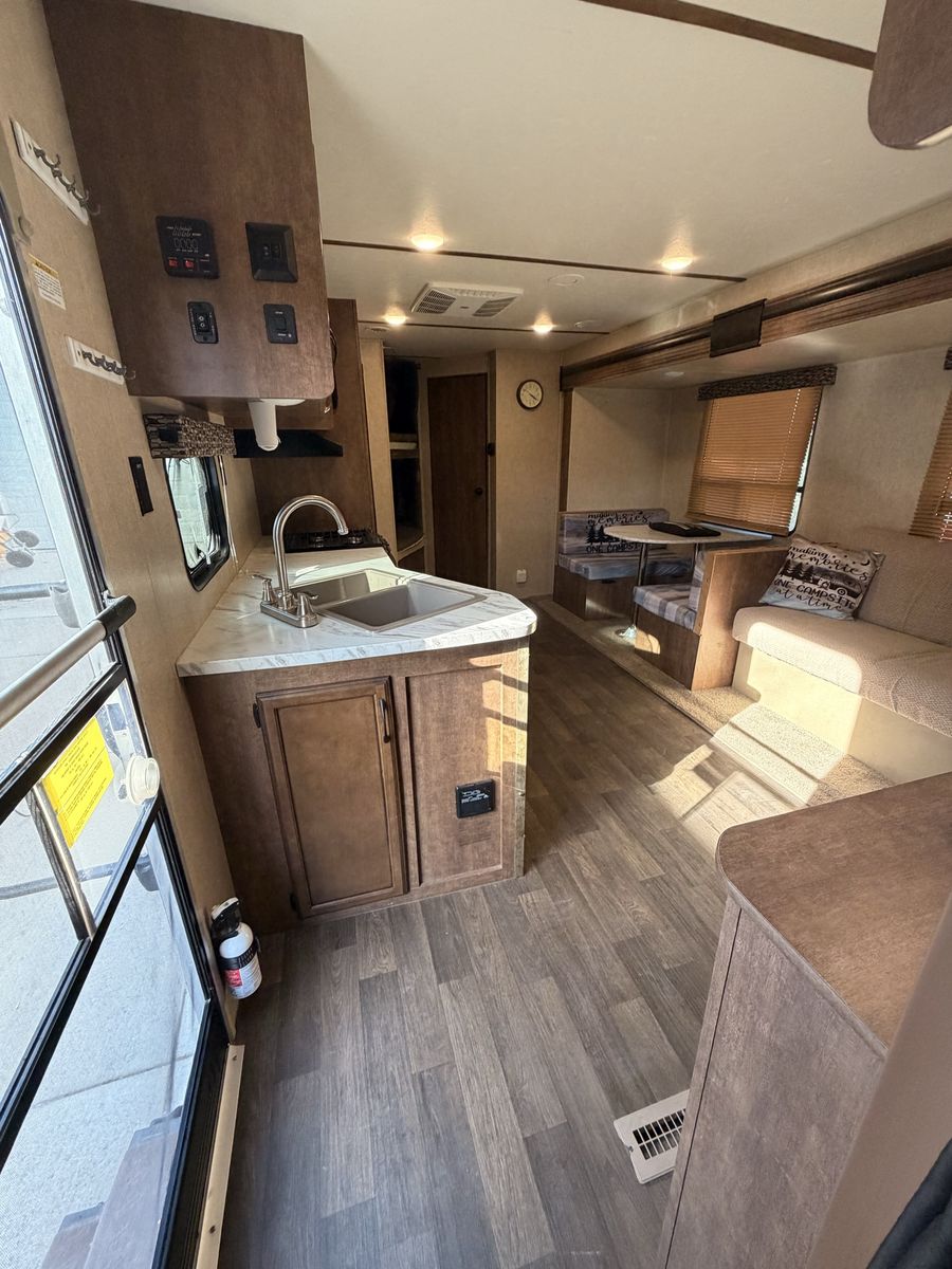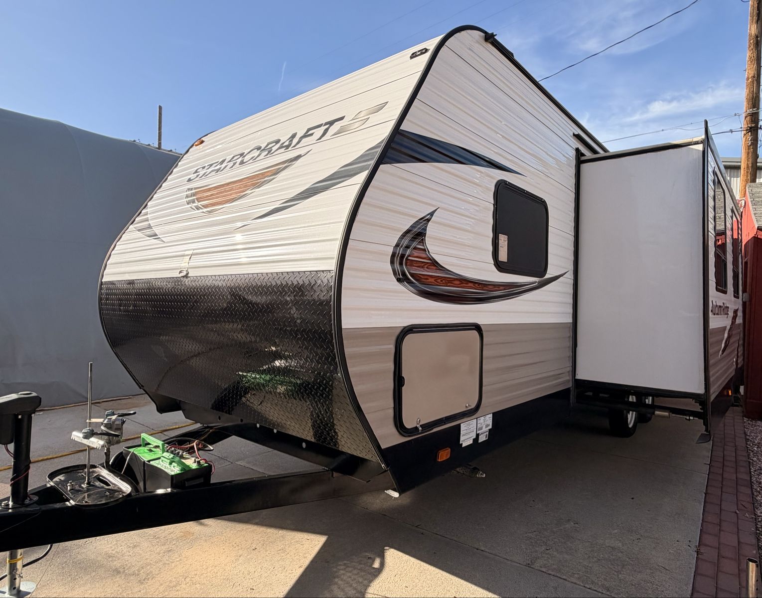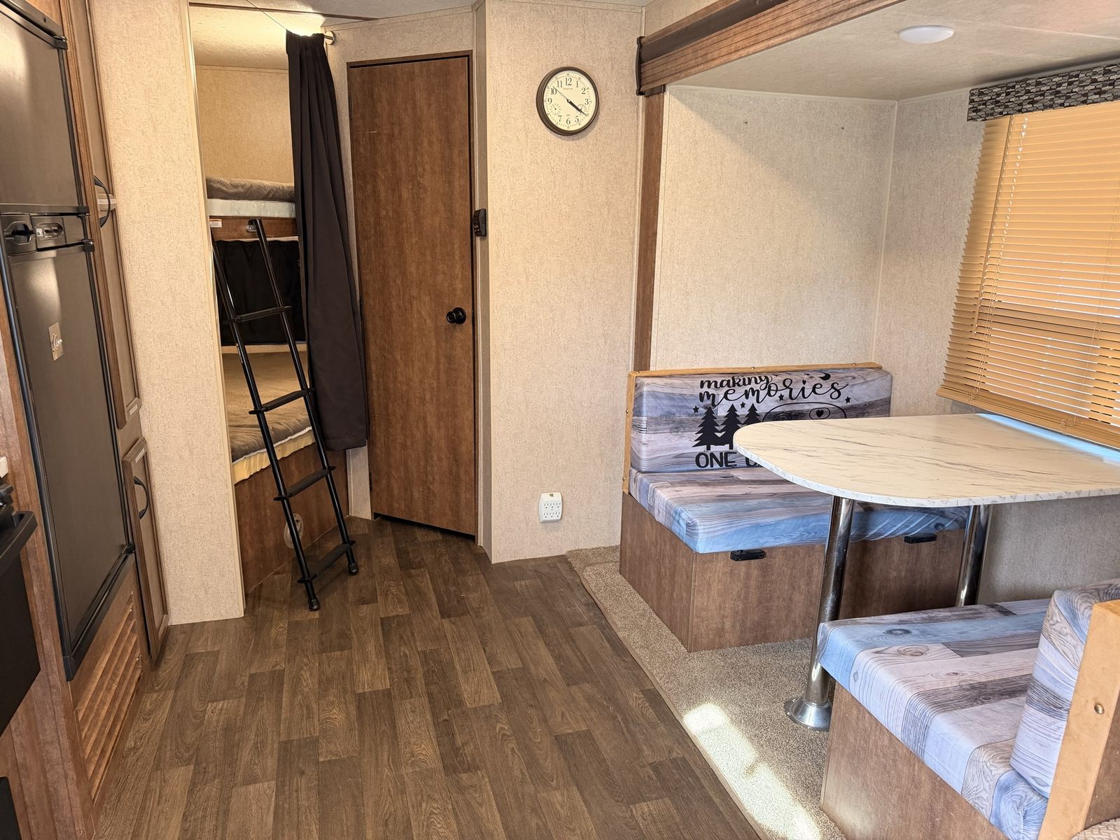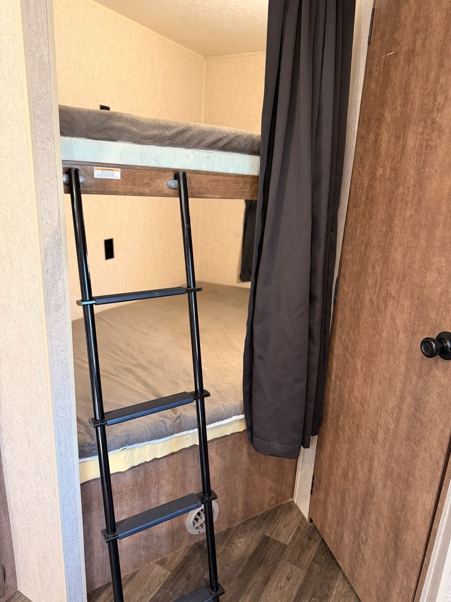 Spring has sprung and camping time has almost begun!! This Bunk House would be perfect. If you are looking to give up your old ratty tent and look forward to the cushy trailer experience then this trailer would be a great option, it’s not to big and not too small, it’s the perfect size and it will sleep 5-8 people depending on if you like to cuddle. This trailer is overall in very good condition with a slide out and power awning, everything works. A new front power jack has just been added to make hooking and unhooking your trailer easier.