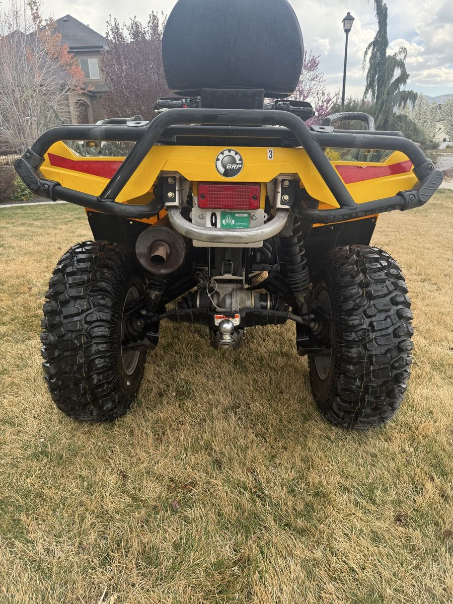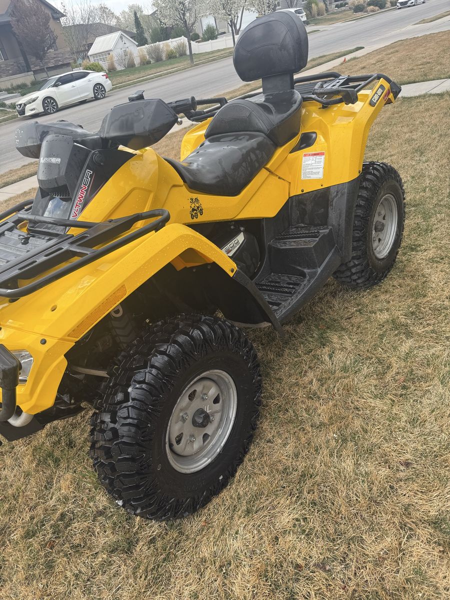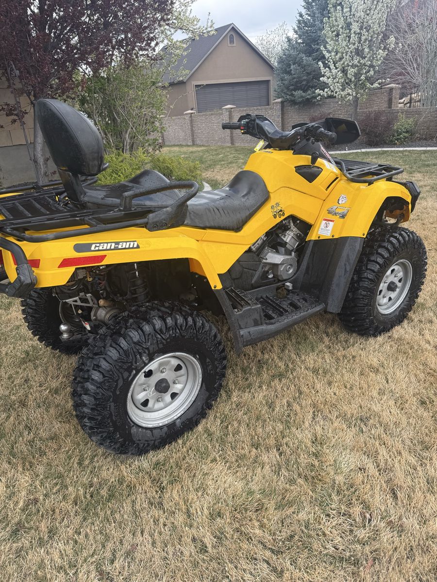 Low miles yellow Can-am. Machine runs well has lots of power has 4wd Two seater Service just done in march Brand new fuel pump Brand new front breaks Has winch spot but winch is out. Great machine just dont have time to use it Has the books and tool kit. Has hand warmers to Title in hang 5000 OBO