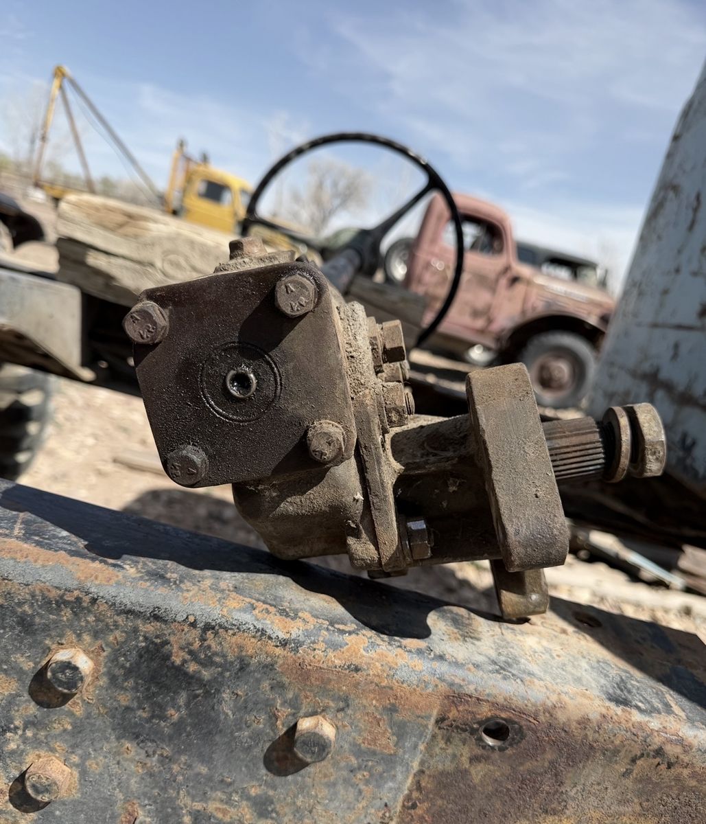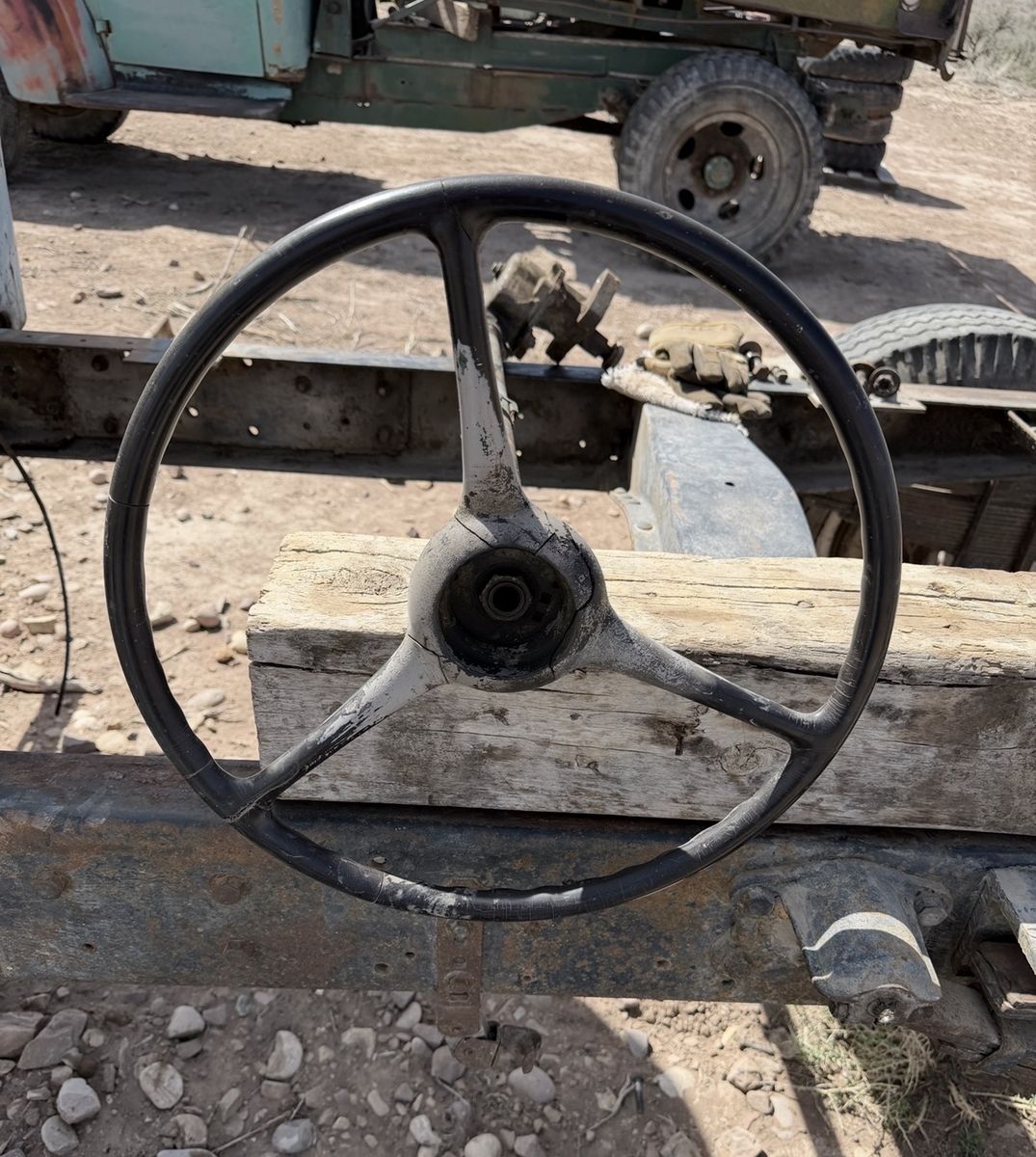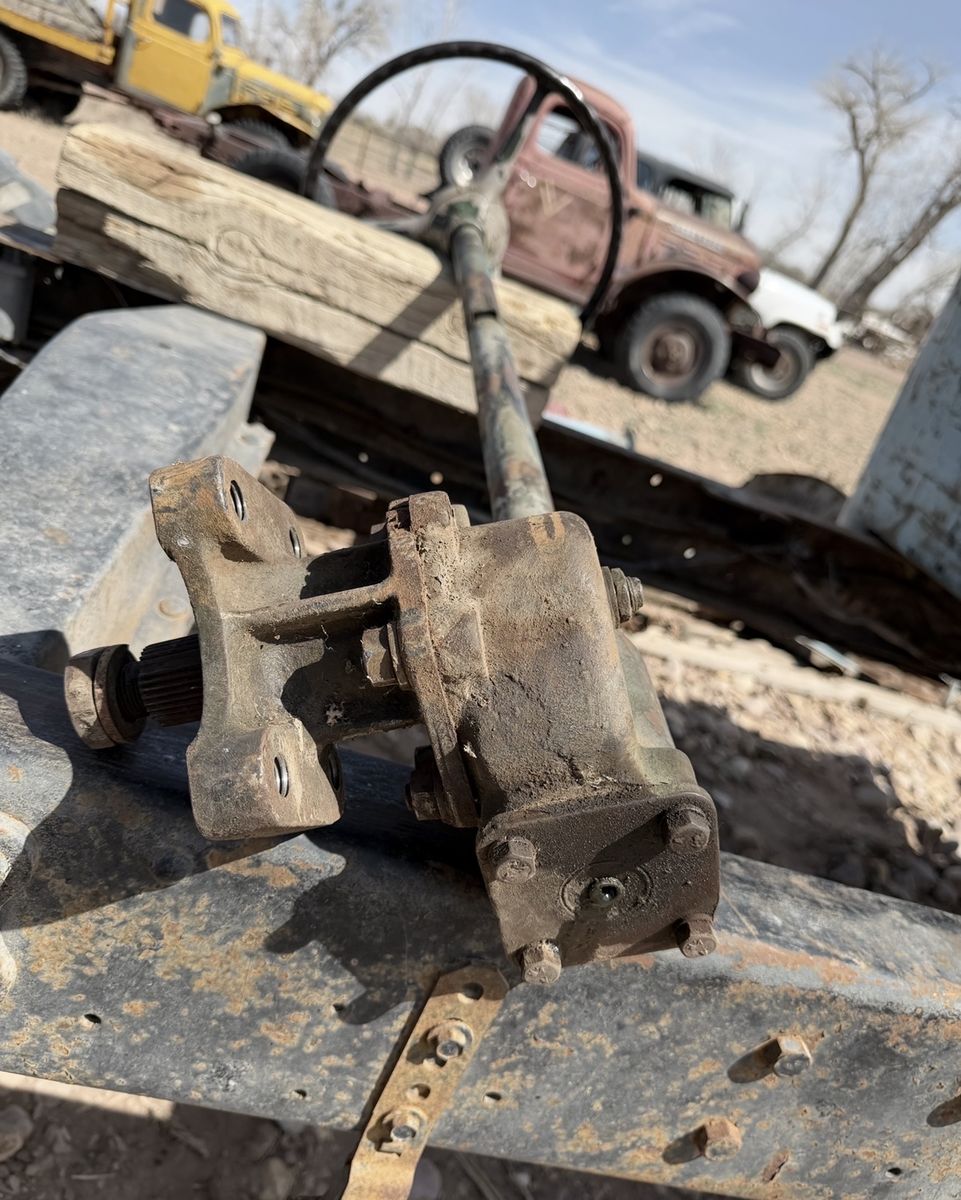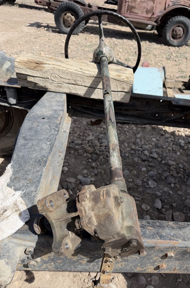 ApplePayComplete and original steering assembly to include Gemmer steering gear box, 35” steering column and steering wheel. Compatible with WDX, B-1-PW and B-2-PW models. Gear box is in good condition, turns smoothly with no slack or excessive play. Steering wheel is restorable. Column is not bent or rusted or pitted.