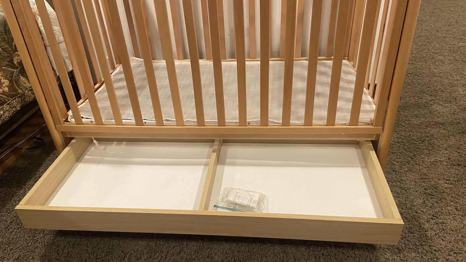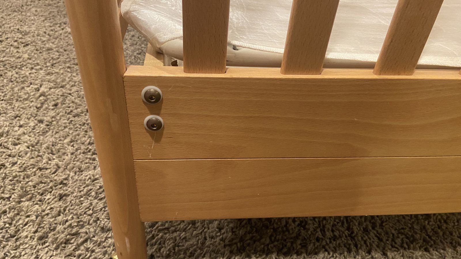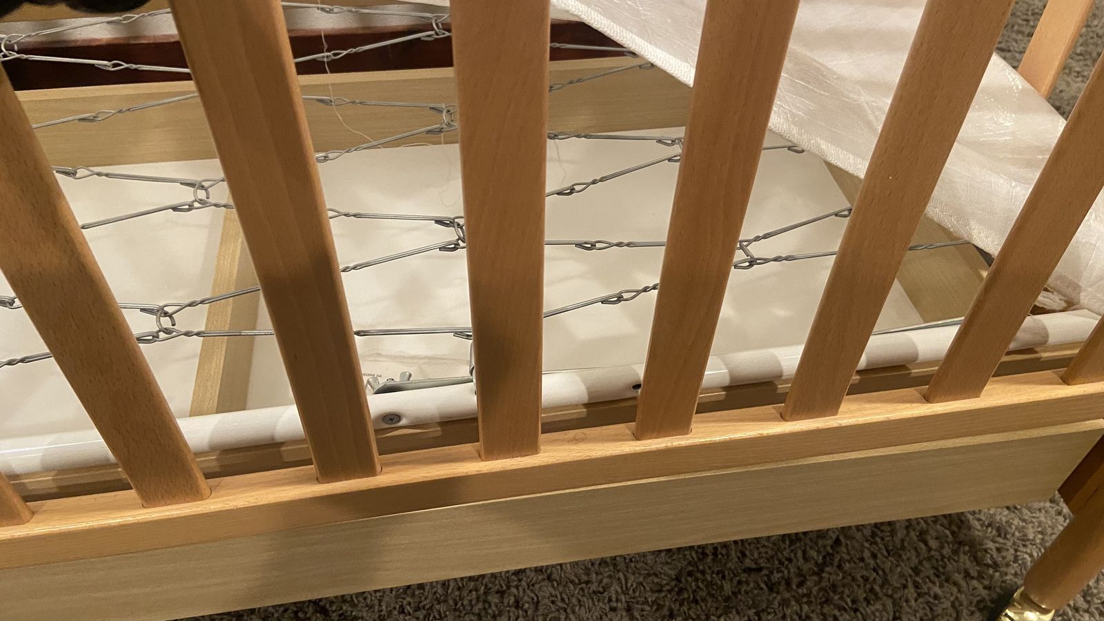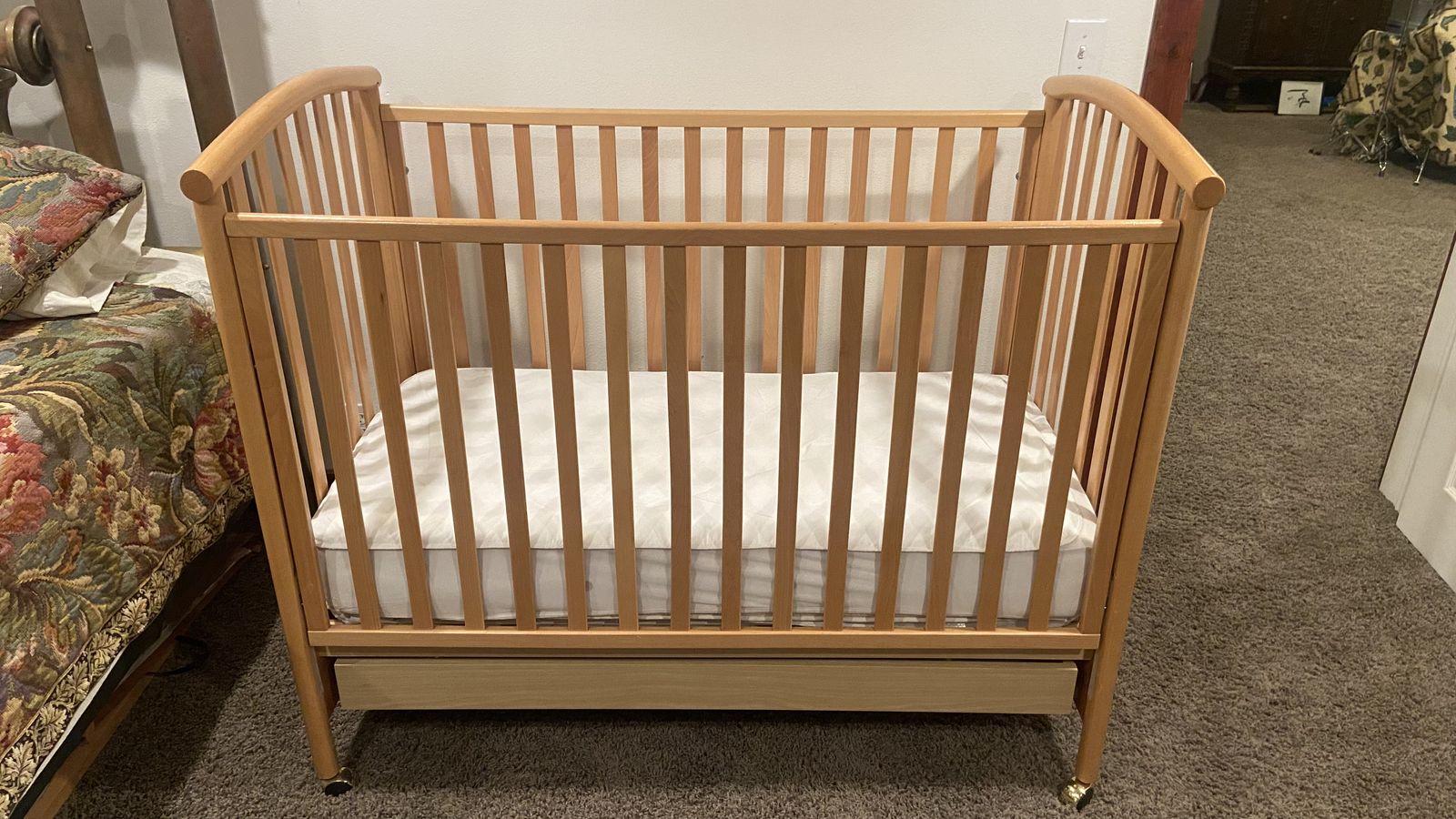 VenmoThis is a solid hardwood crib that has stood strong through our four kids and is ready for a new home! The mattress adjusts to three different heights, and one of the walls lowers for ease of getting kiddos in and out. Dimensions are: 55”w 46”h 31.5”d.