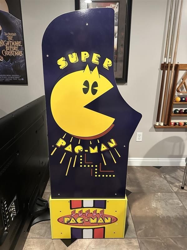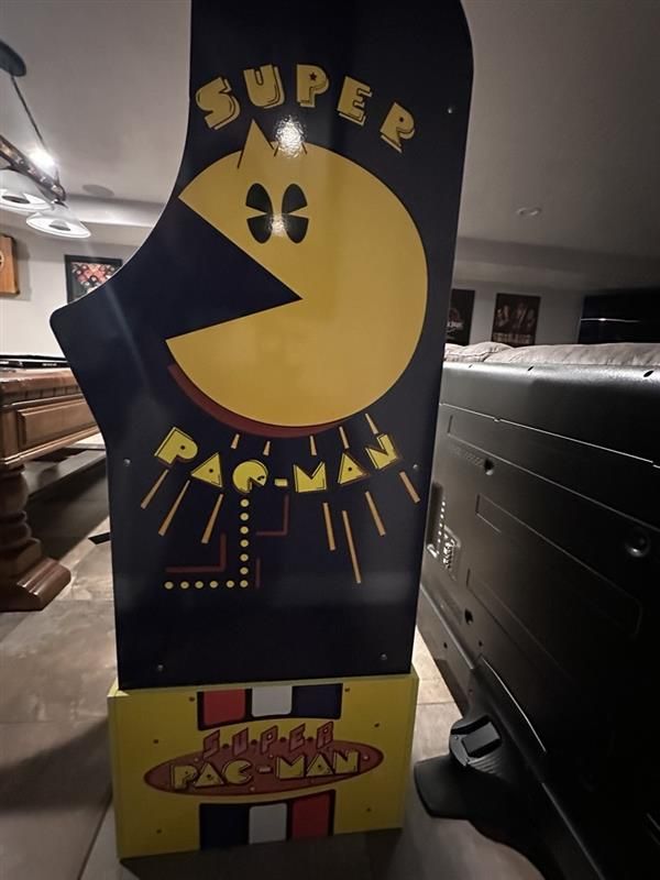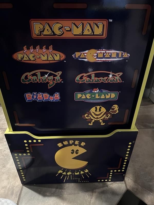 VenmoBarely played Pac-Man arcade with six additional games. Everything works perfectly, has the back lighting you can turn on as well. Comes with like new Pac-Man stool and brand new arcade signs.