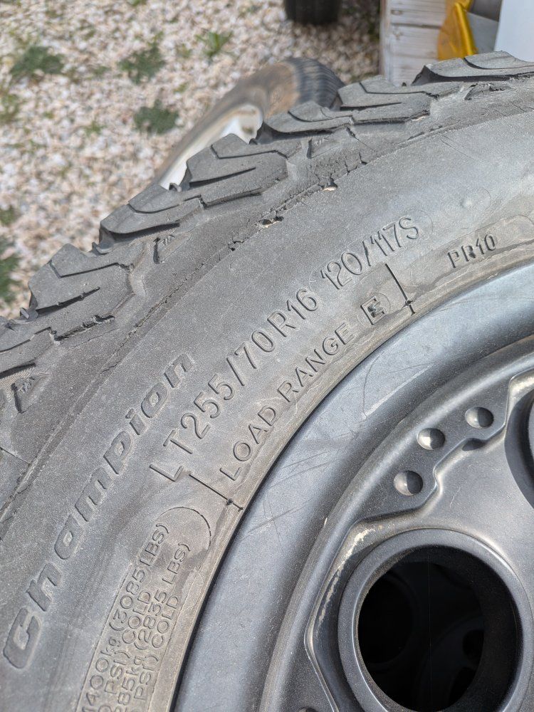 rubber is cracked but they all hold air, rims are in good shape, 16"