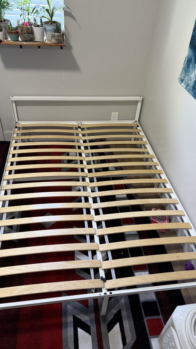 Full size bed frame from IKEA (GRIMSBU 805.085.18) White metal Includes the slats Includes all hardware (nothing is missing)