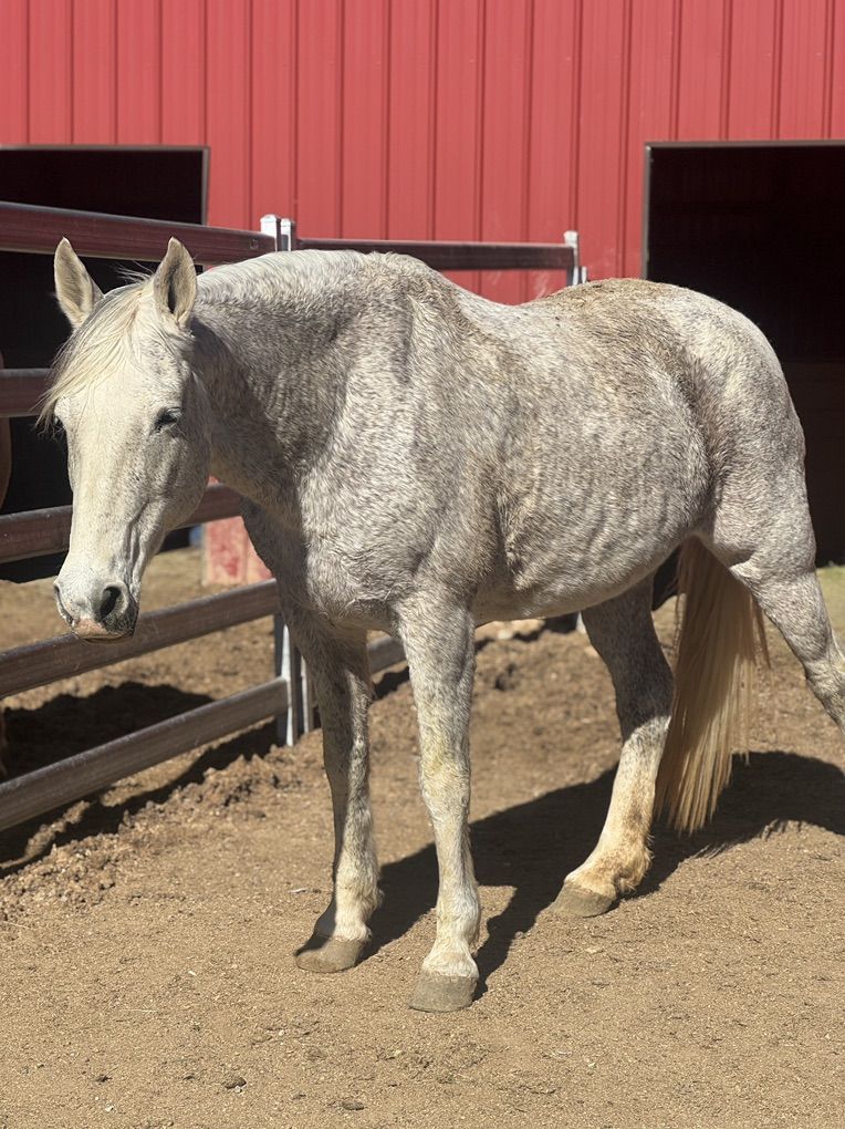 His dam is a big, grey mare (see pictures) that I own who is also gaited the very best. Her gaits are effortless for her. She can do everything from a silky flat foot walk to a saddle gait that reaches over 10mph. She too is AWESOME to ride and is one of our favorites. Fantastic disposition and great build too. She’s as good as they get in my opinion, and Gaitor will be too.