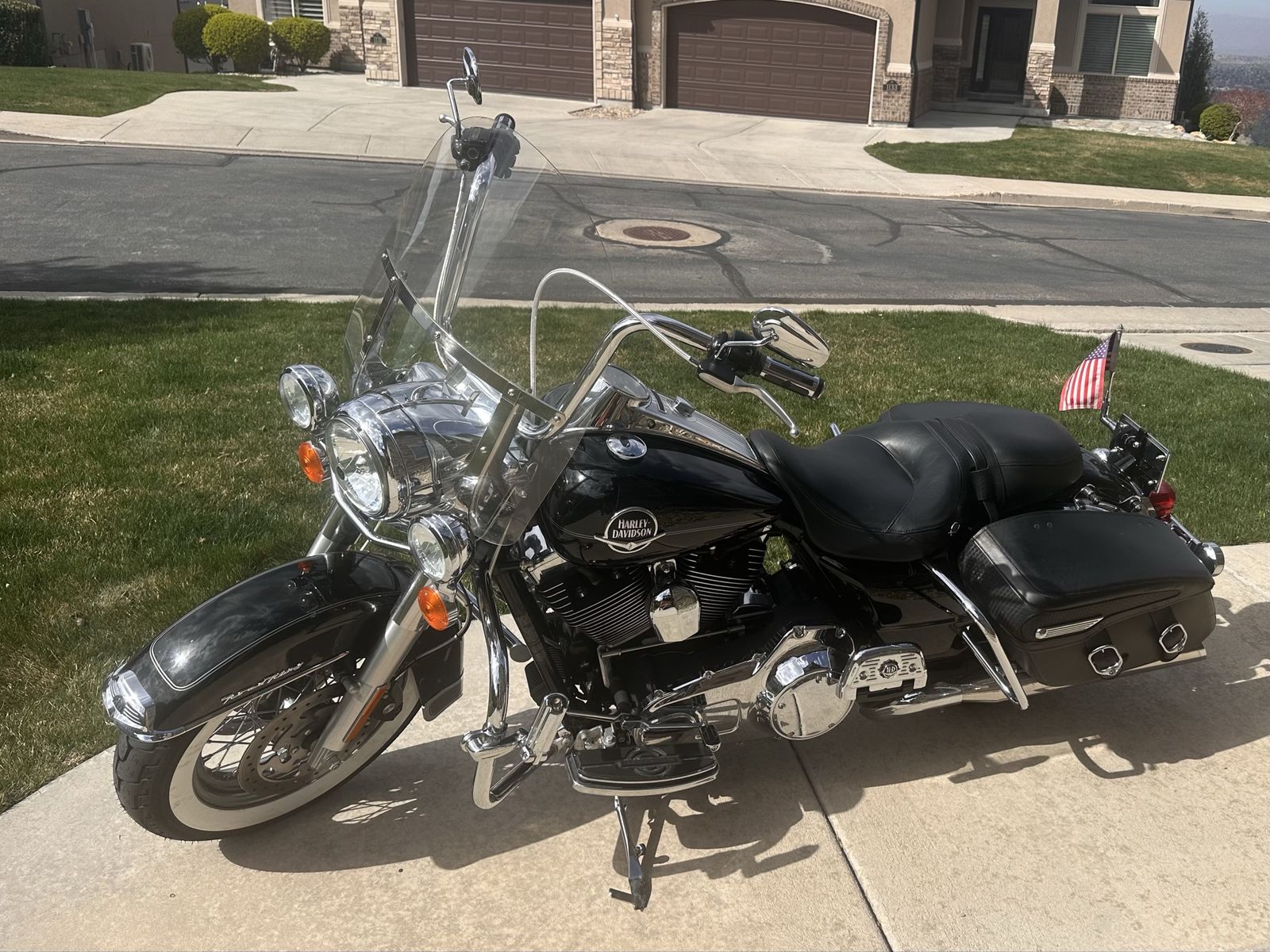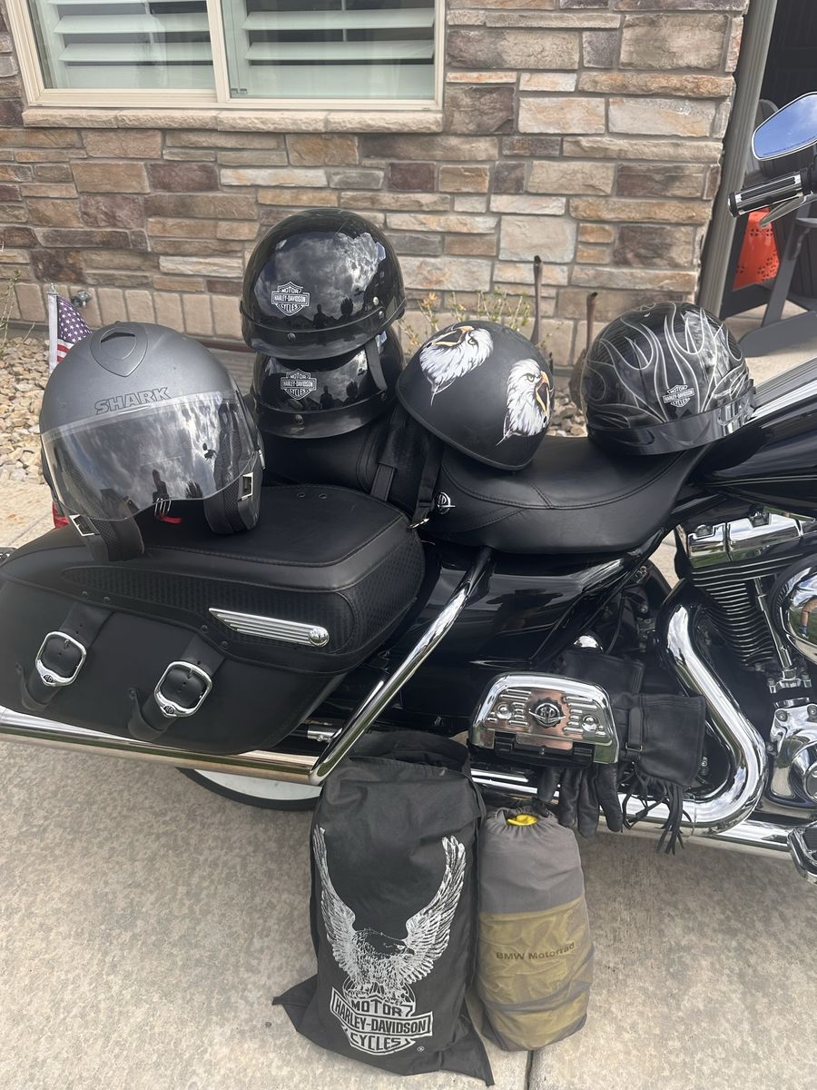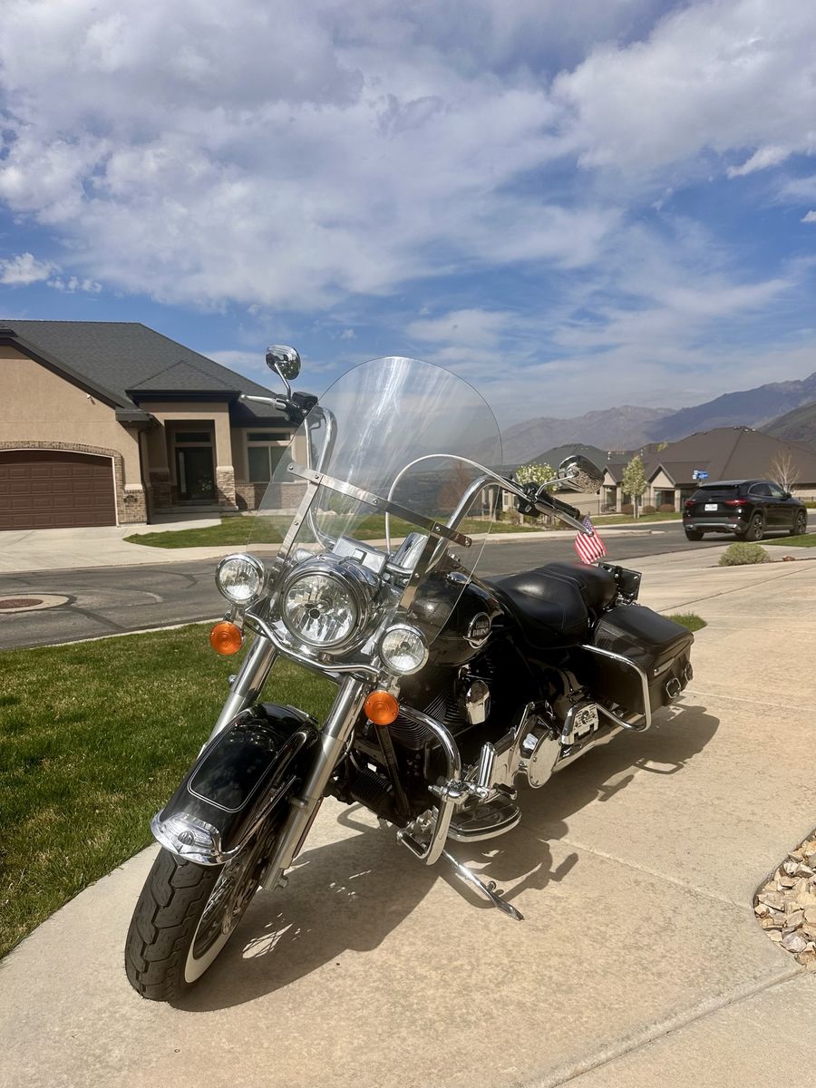 The 2010 Harley-Davidson Road King Road King Classic (FLHRC) is an iconic touring motorcycle featuring a 1584 cc (96 cu in) Twin Cam 96 engine, 6-speed transmission, and a stable, redesigned frame with leather saddlebags. It is valued for its classic styling, comfortable long-distance riding, and manageable handling. 1 owner. New tires and service. 12,000 miles. Always been garaged and regularly service. Never had any issues. Upgraded pipes, handlebars, light kit, grips and footplates. Will also throw in riding gear. His and hers complete leathers and helmets.