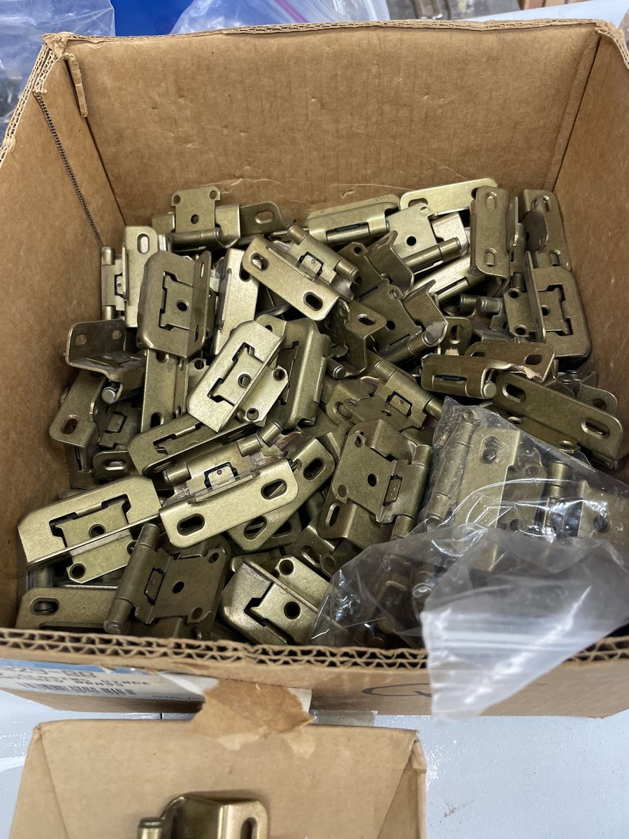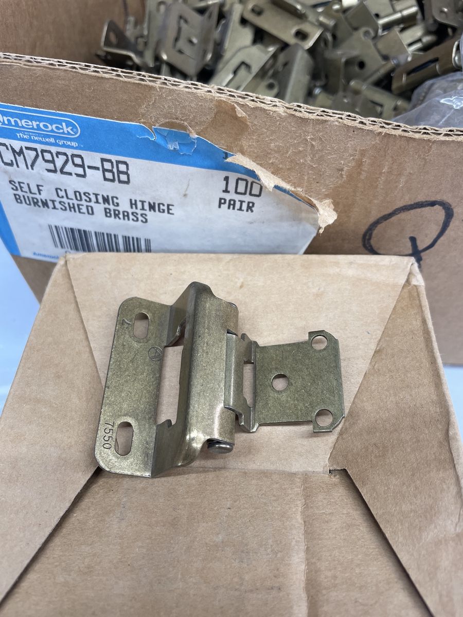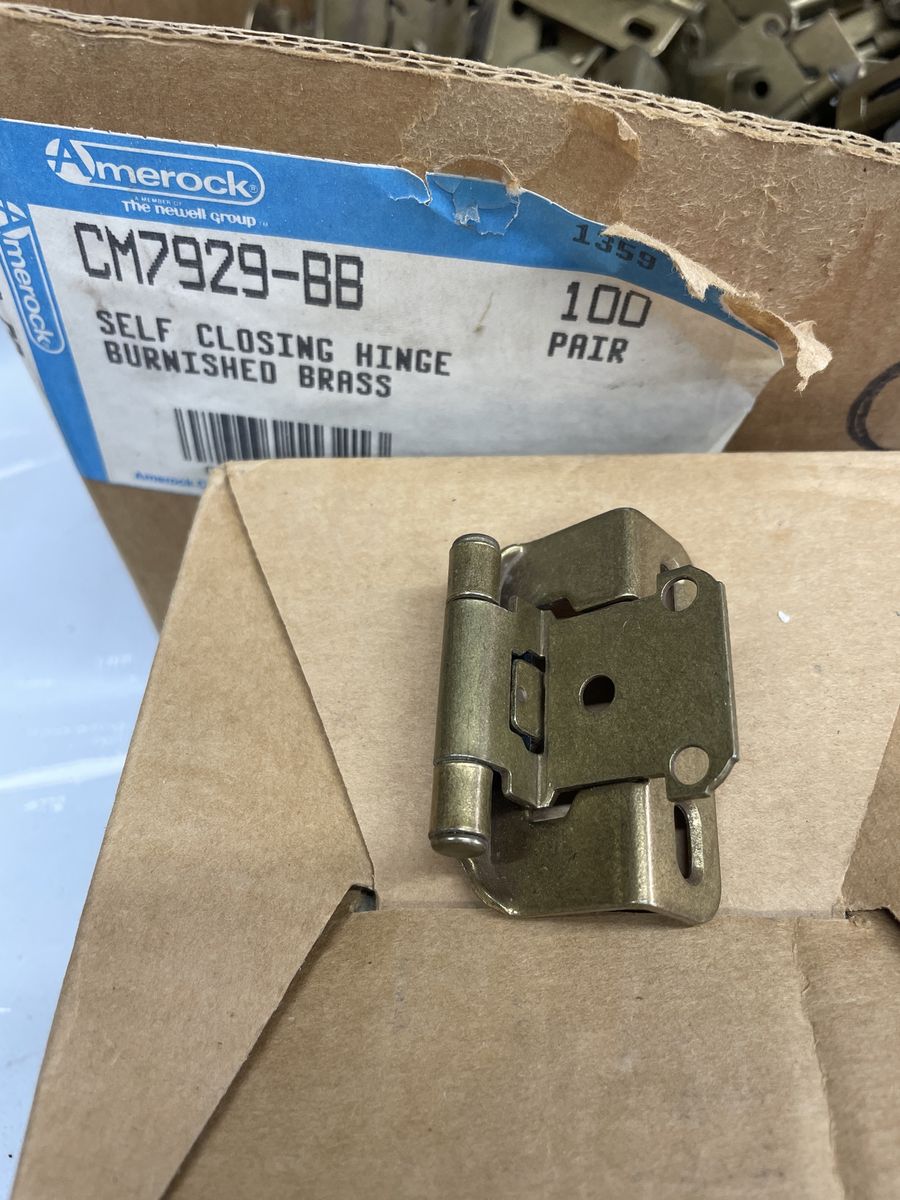 Amerock full rap inset self closing cabinet door hing model number is in the pics on the box I have dozens $.25 each all new old stock burnished brass color I have many other colors and styles of hinges and knobs drawer pulls and other hardware come and look and find that finishing touch for your project