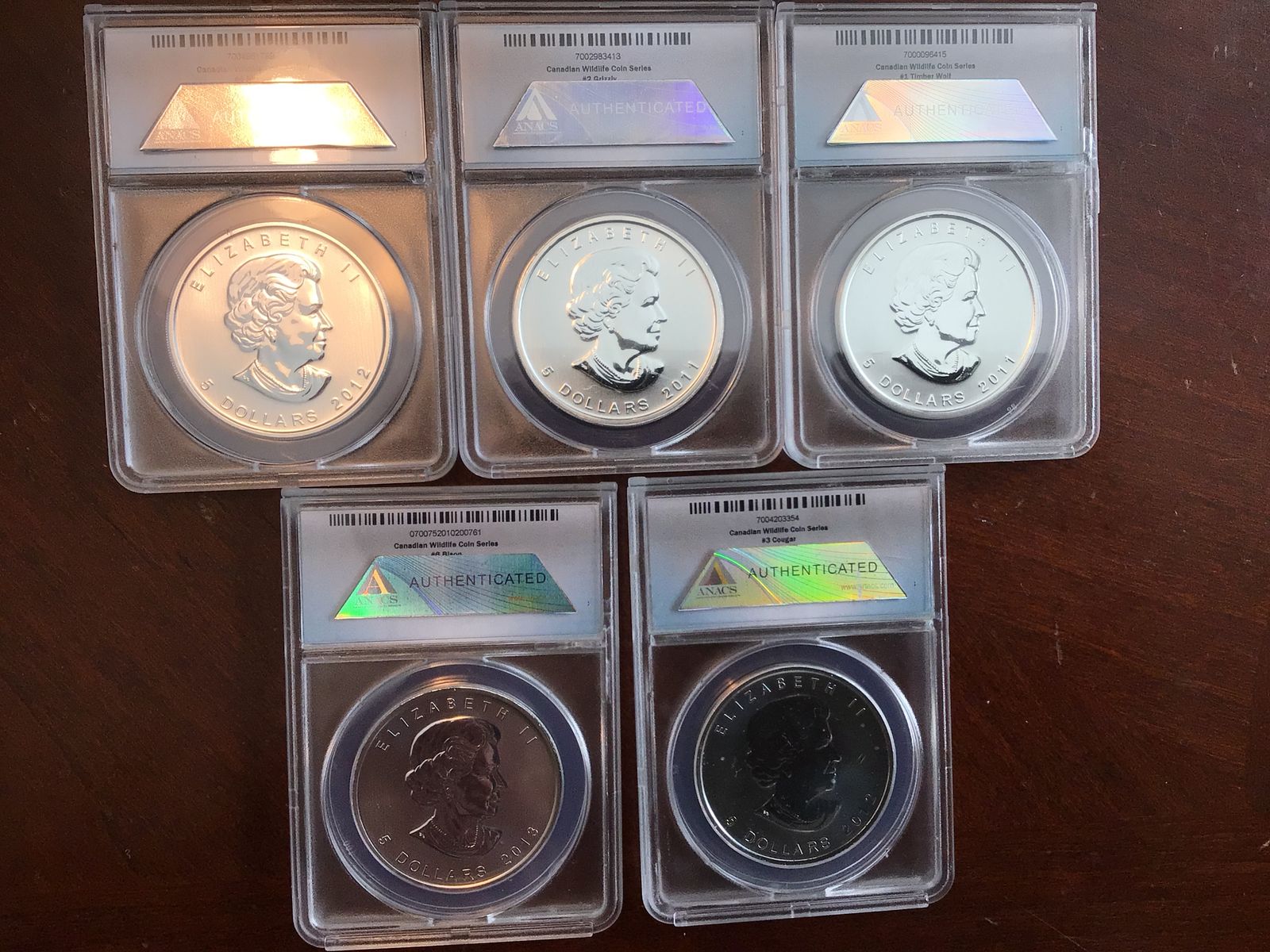 Five one ounce coins. Moose, Bison, Wolf, Cougar, Grizzly Bear. All for $500