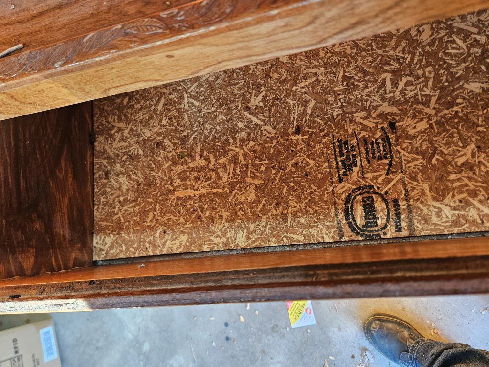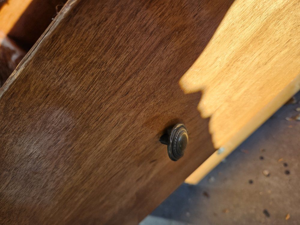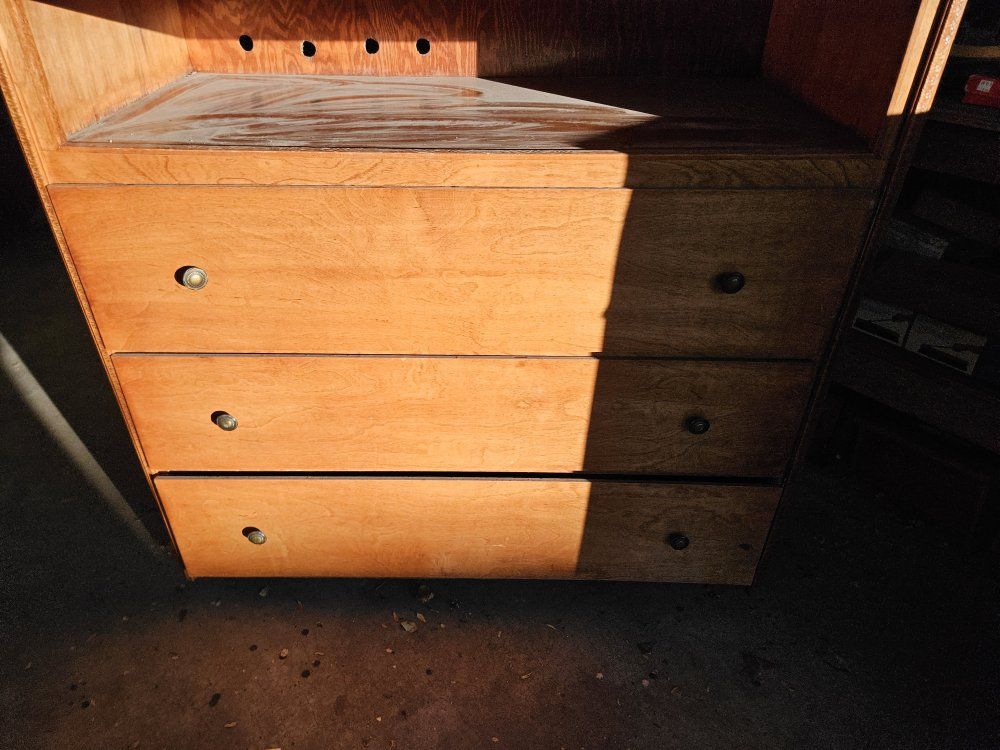 Handmade Wooden Dresser - Vintage craftsman dresser in the Covey style. Three (3) drawers and one (1) cupboard with cord access holes. Slight damage to one pull knob. $150 or best offer. Showing on Sunday.
