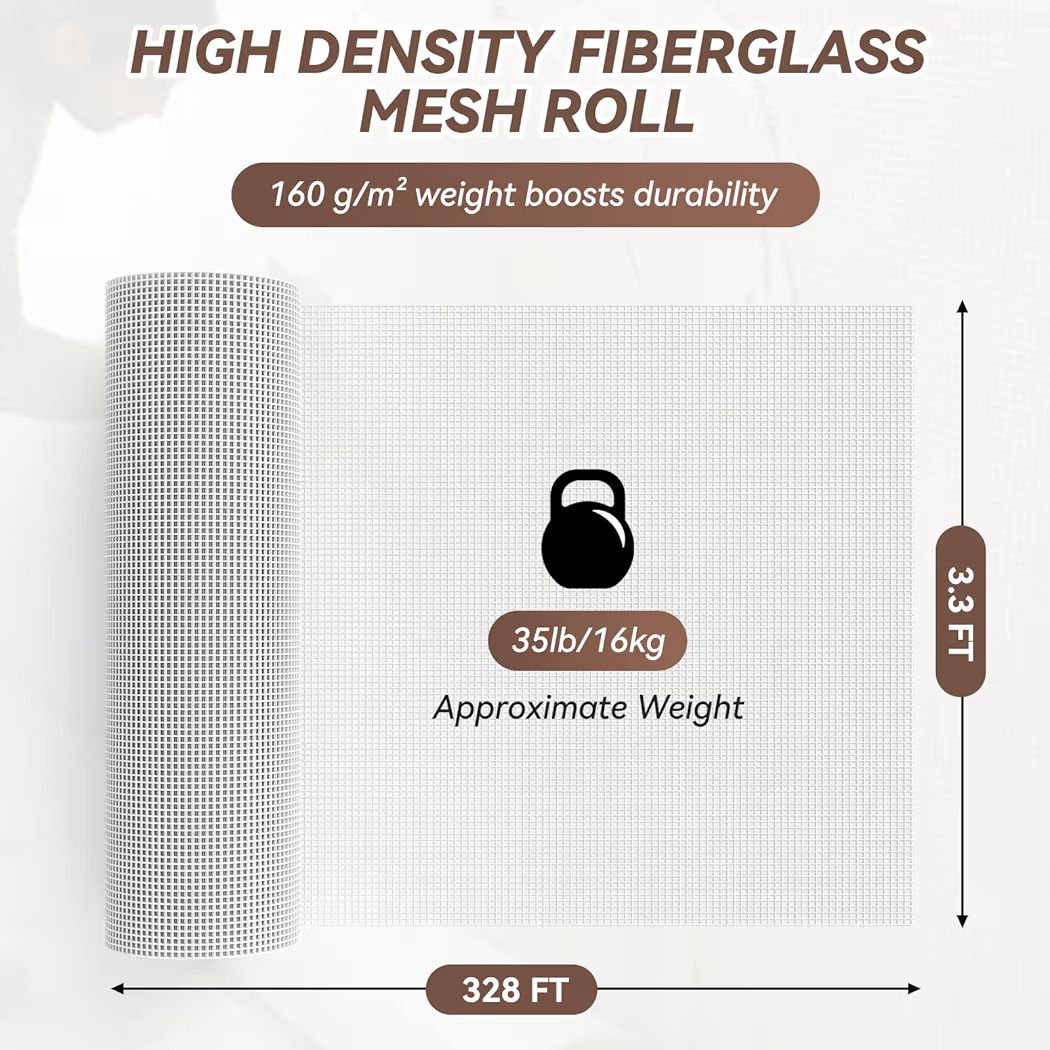 Venmo3'-4" W x 300'-0" L Fiberglass Mesh Roll, 160g/m² White Stucco Mesh for Concrete. Enhanced Strength & Stability for wall Crack Repair, Interior/Exterior Construction, and Ceilings Seam Reinforcement.
