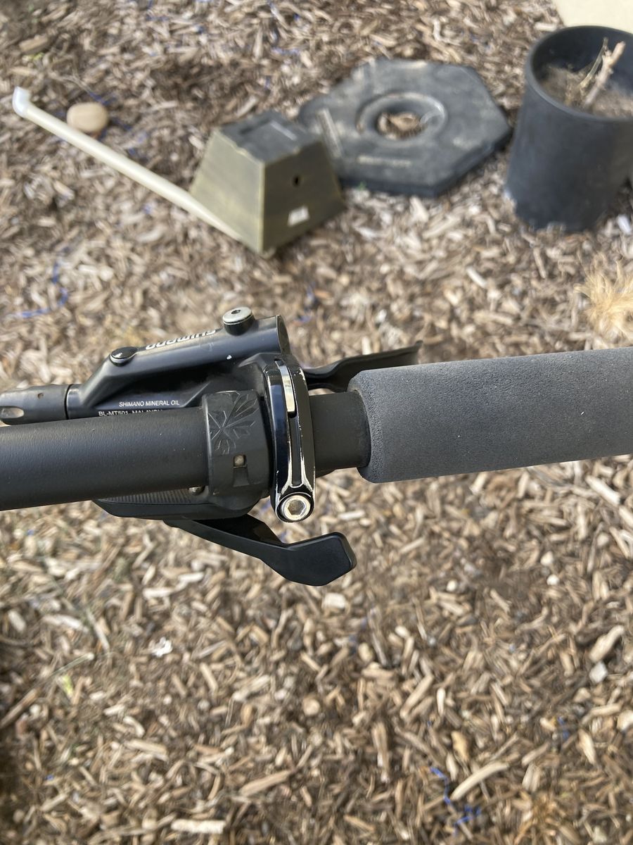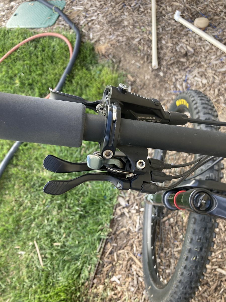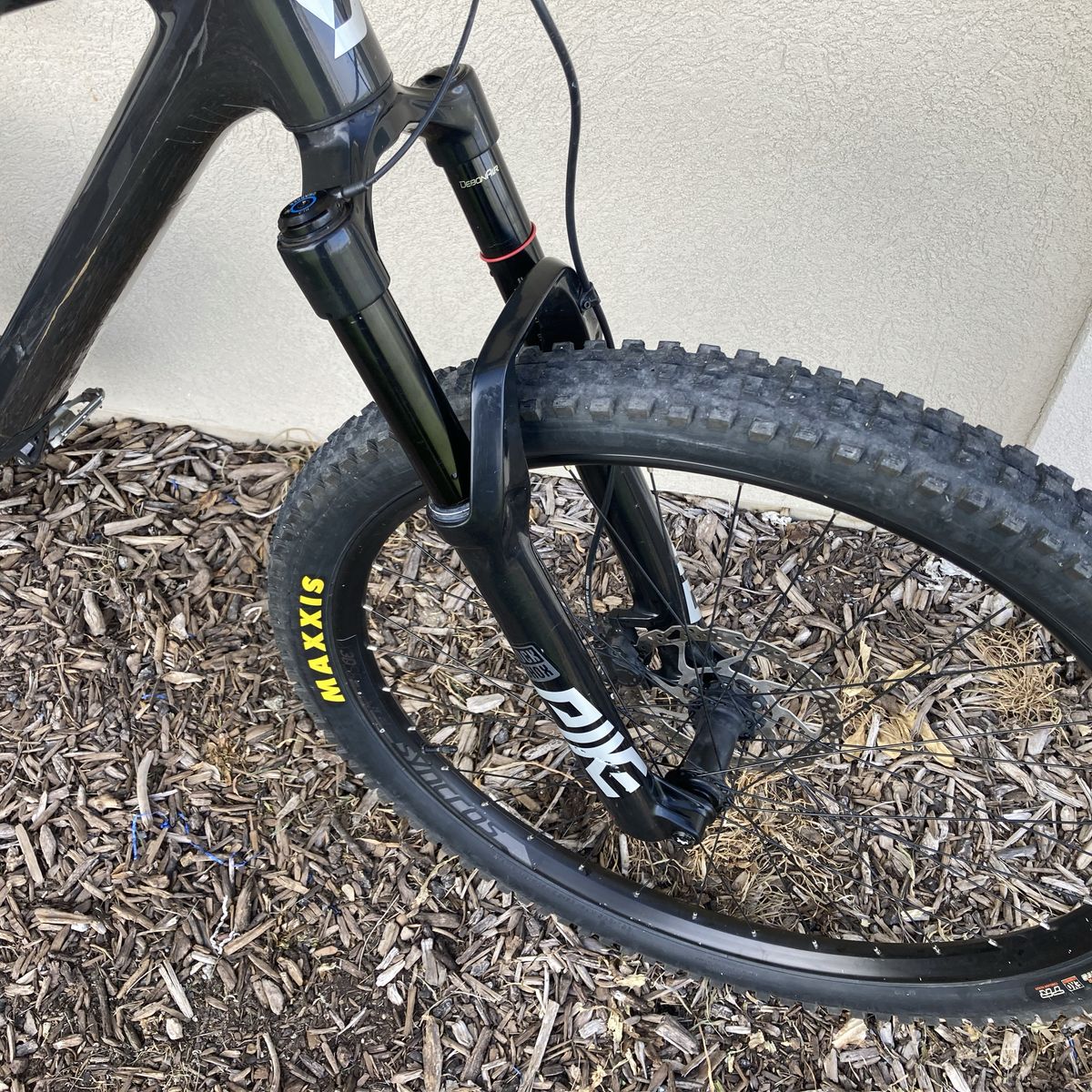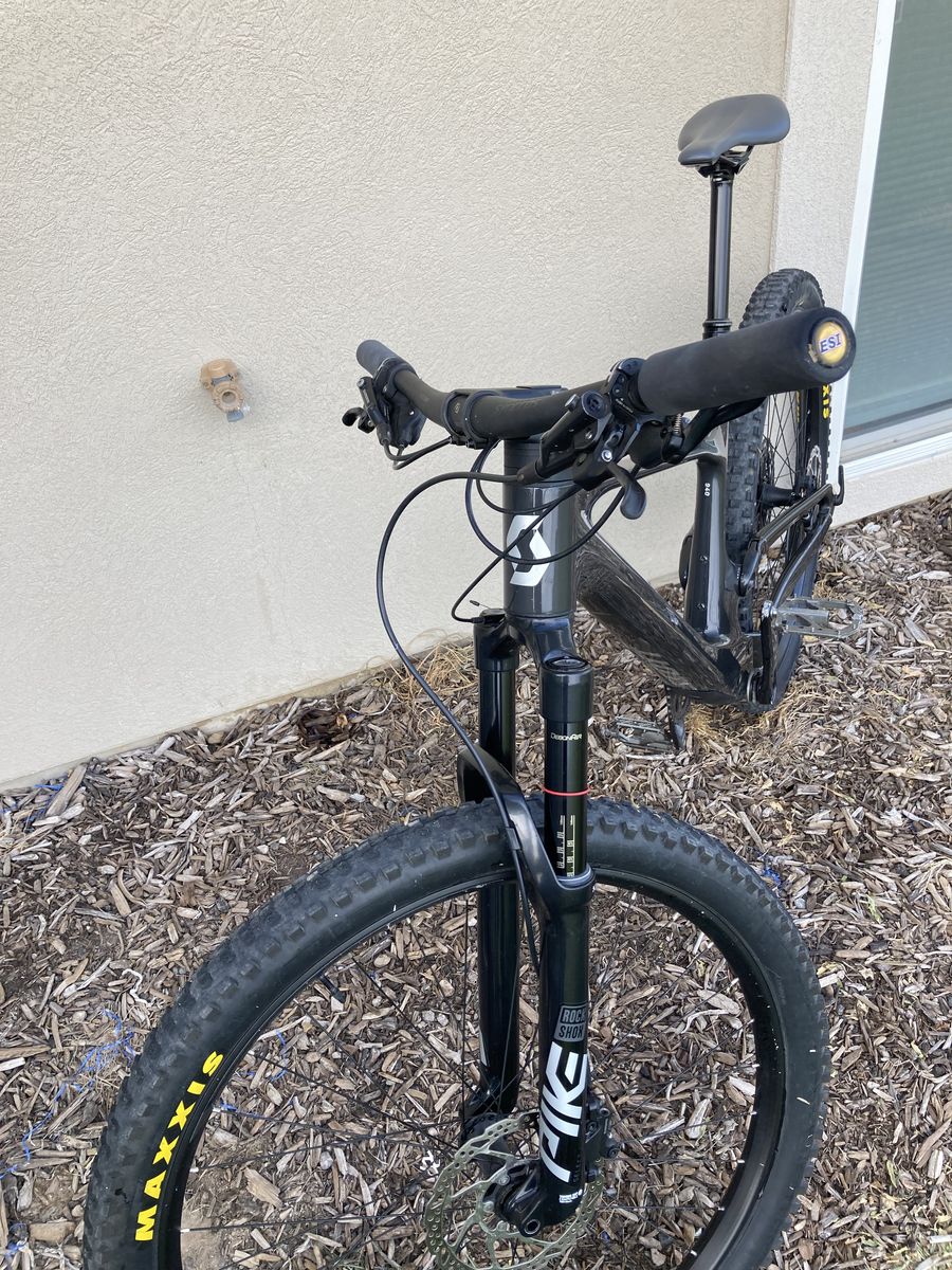 Has remote lockout for the front and rear. Bike is not perfect it has a few scrapes and scuffs from being used. Carbon frame with alloy rear triangle.