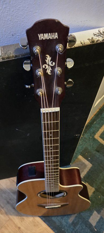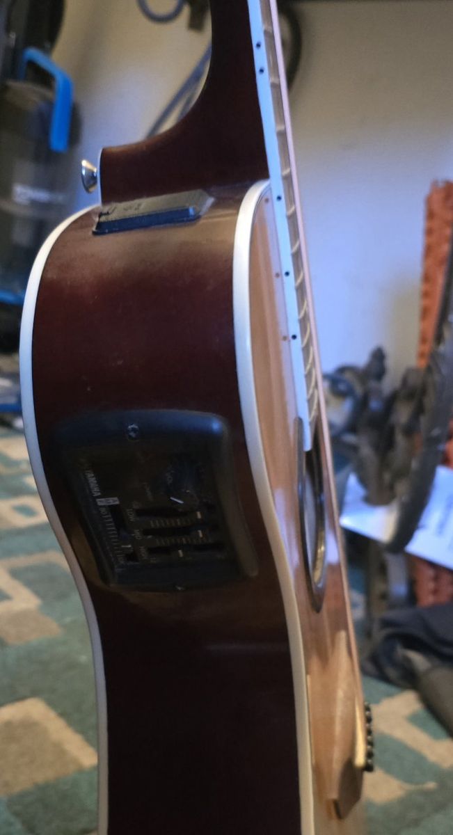 PayPalYamaha Acoustic electric guitar. Built in tuner takes one 9-volt battery. Plugs into amp from the bottom.