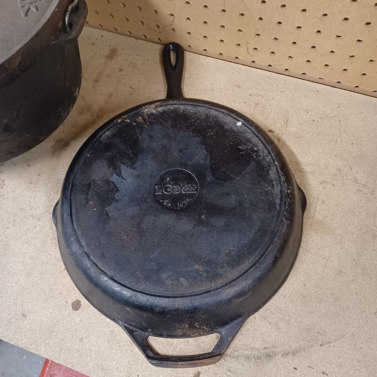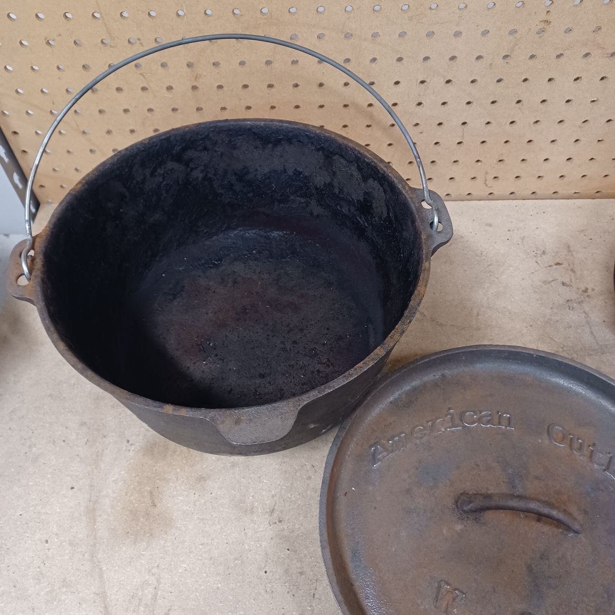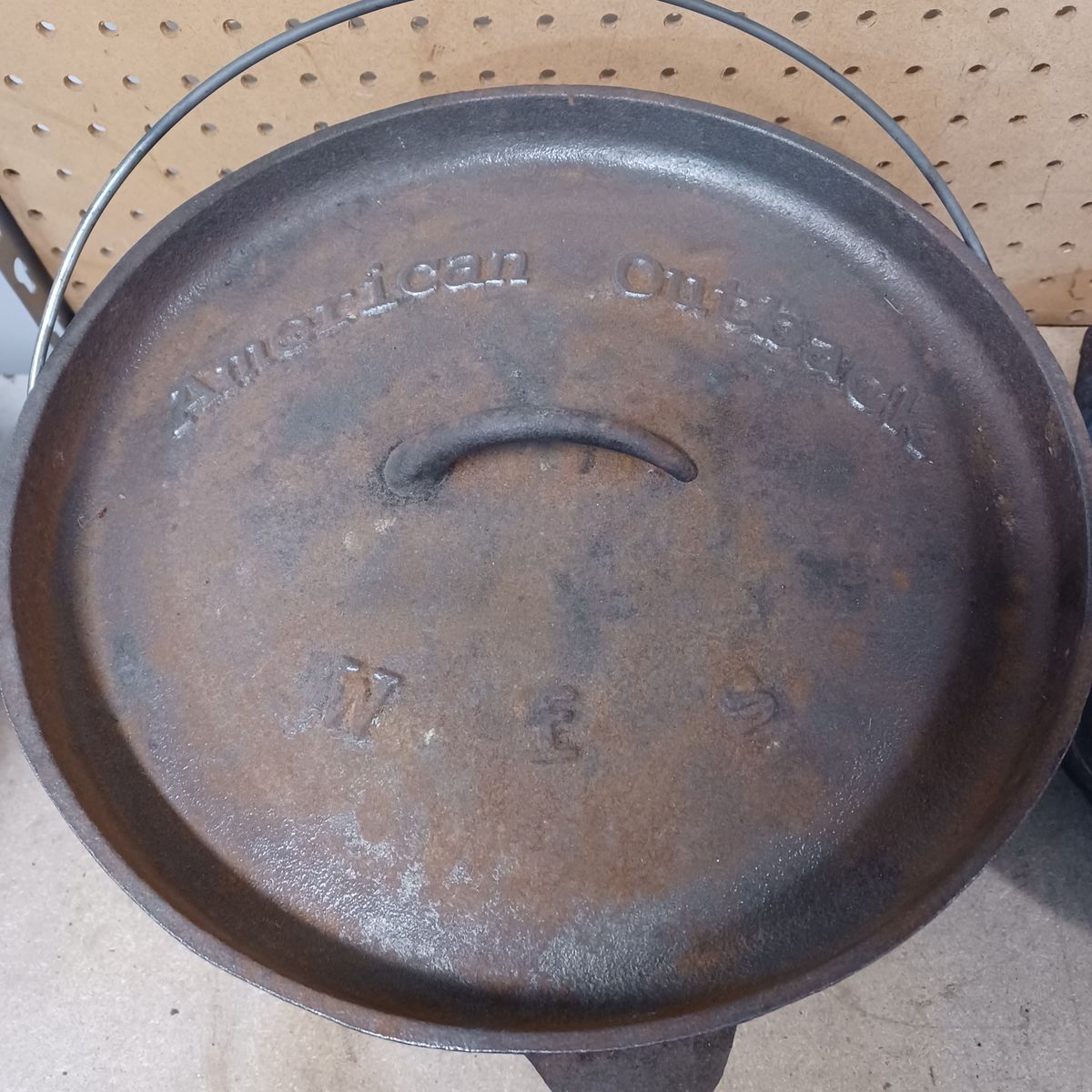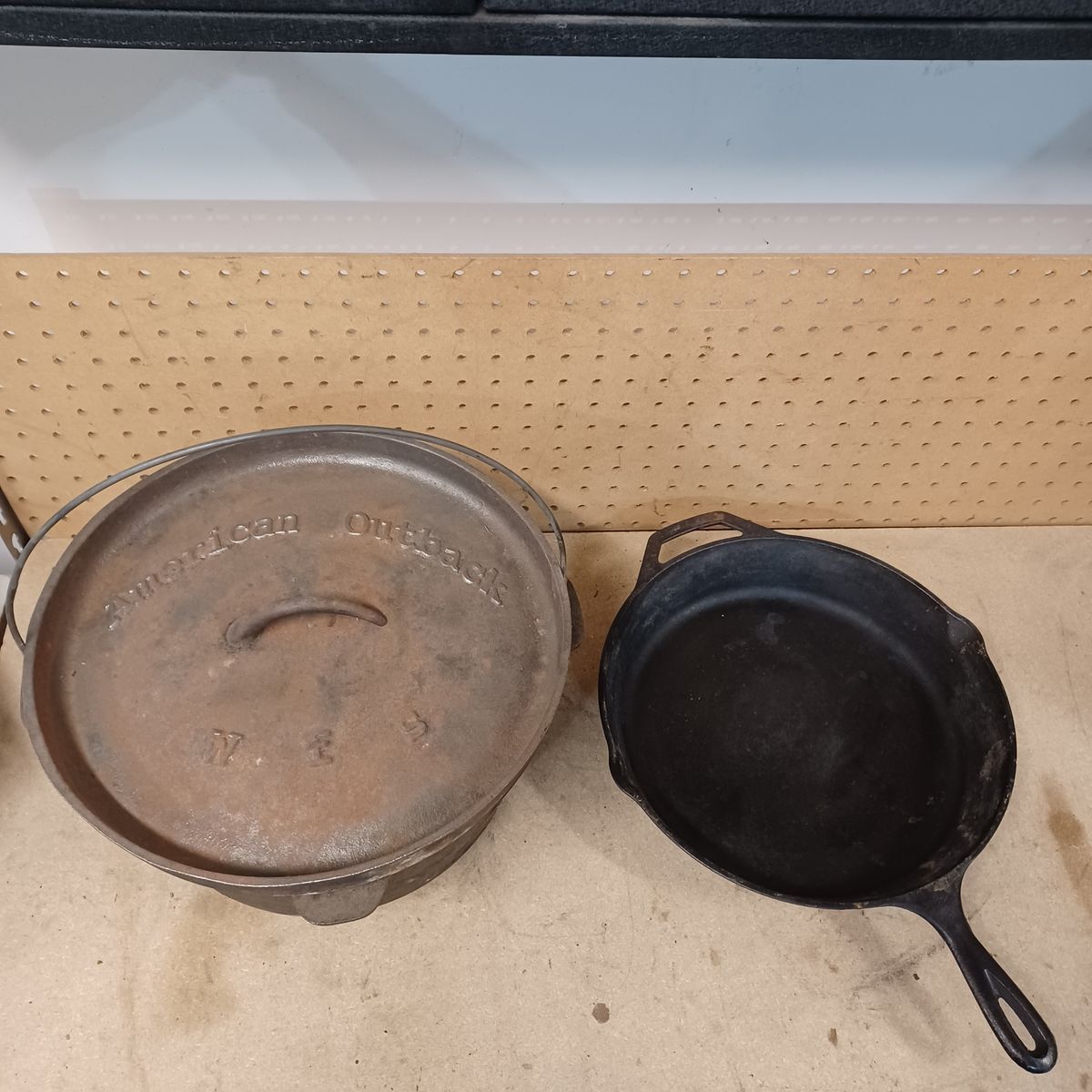Number 12 camp oven (Dutch), and a 12 inch diameter skillet. American Outback and Lodge. Both for $65 dollars.