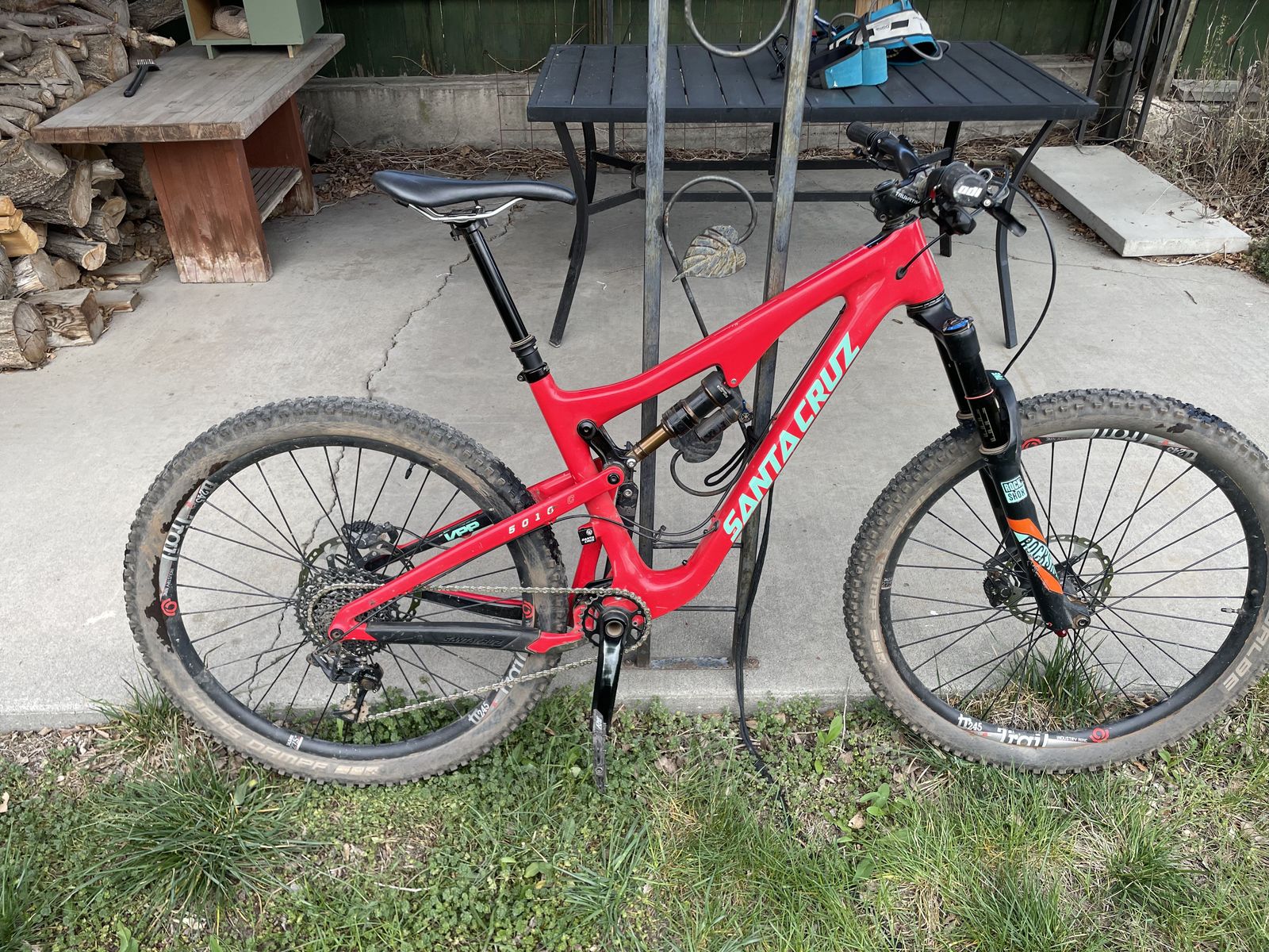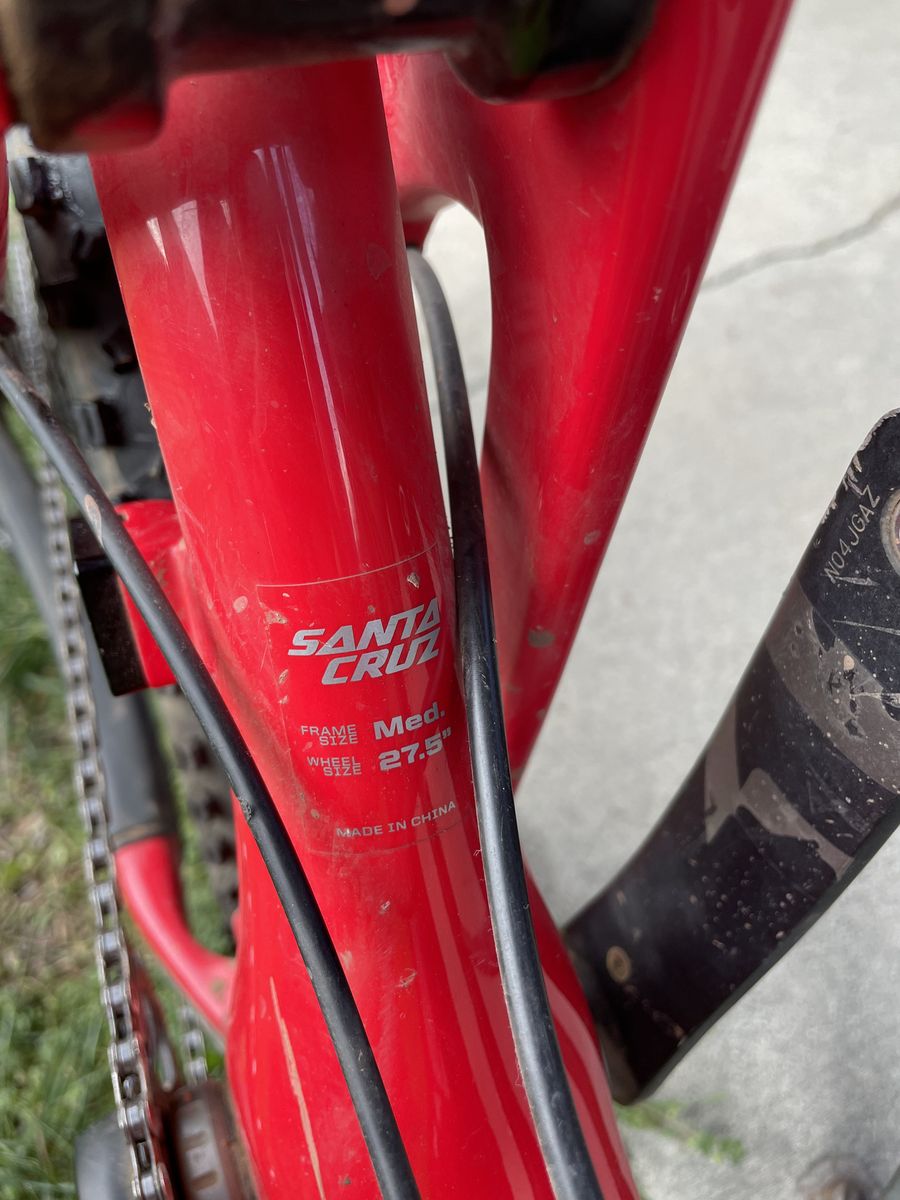 VenmoUsed Sata Cruz 5010 c enduro bike for sale. The frame is size medium, and the wheels are 27.5". The brakes are shimano deore xts, and the derailer is made by sram. It has a 1x11 drive train. The wheels are set up tubeless.