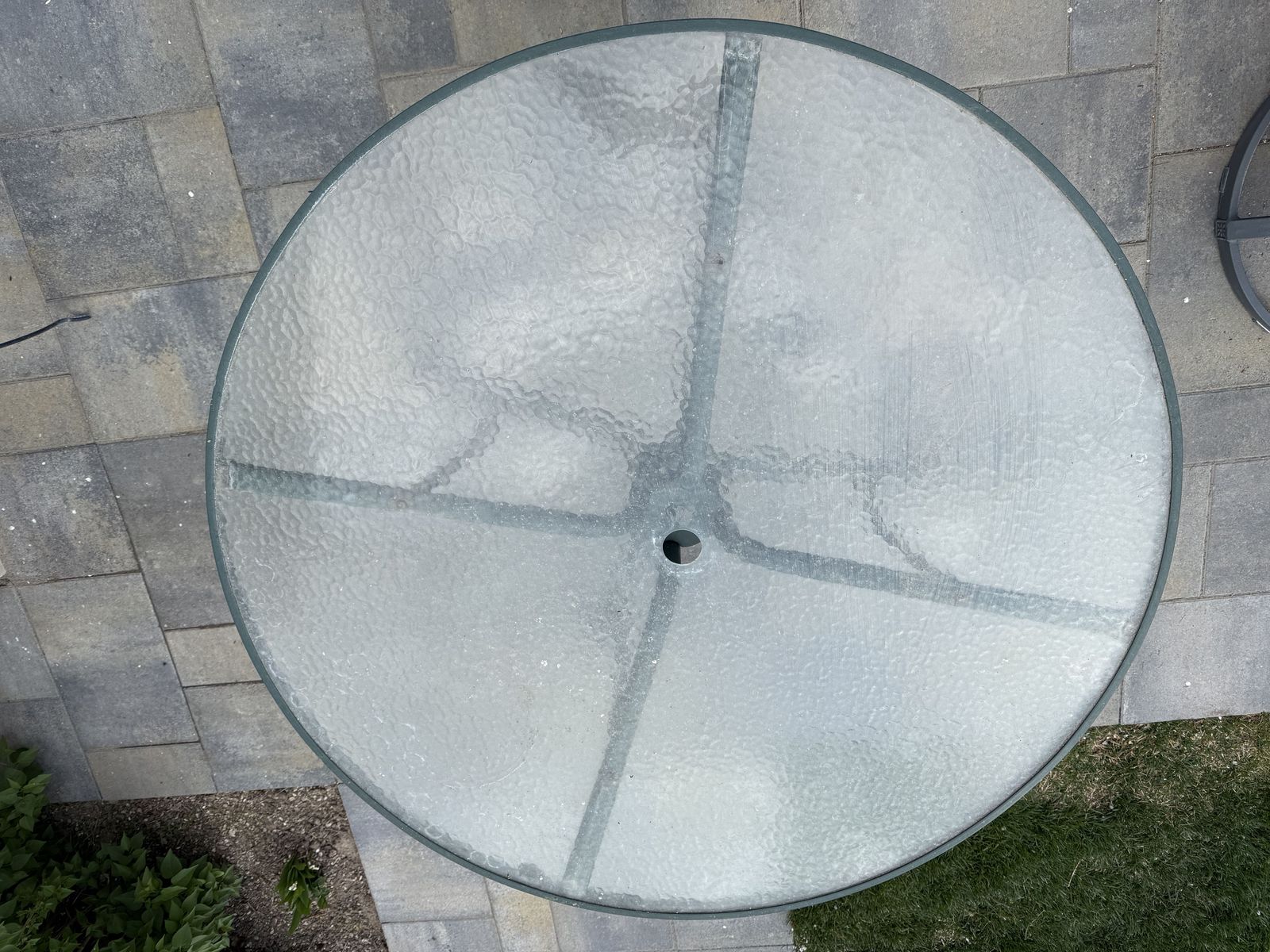 Giving away a round outdoor patio table with glass top.