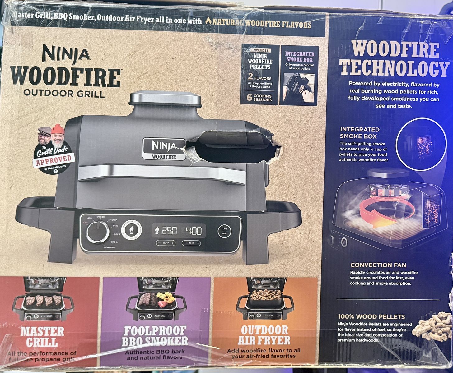 ApplePayNew in box (never opened) Ninja Woodfire Outdoor Grill! Perfect for camping or poolside grilling.