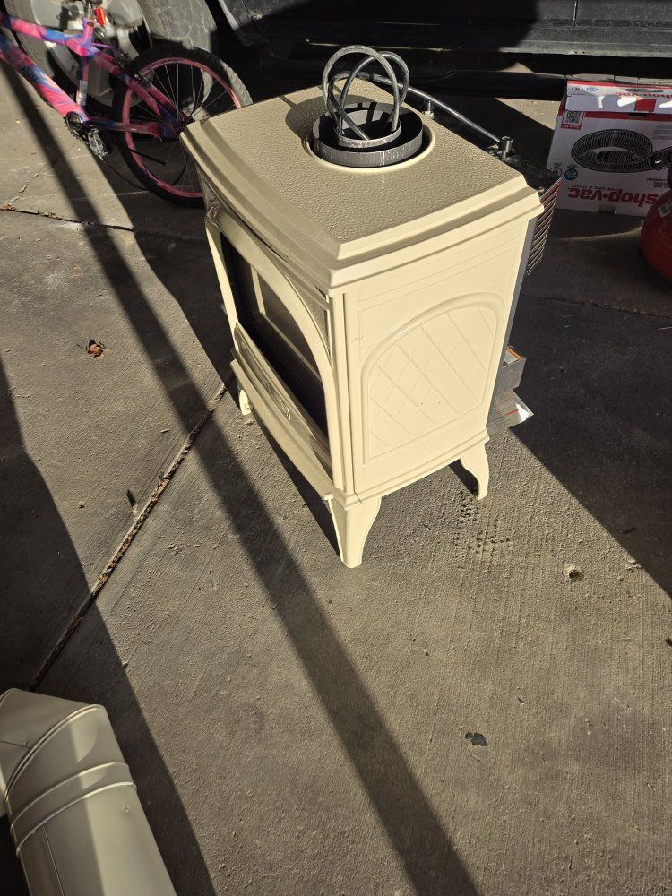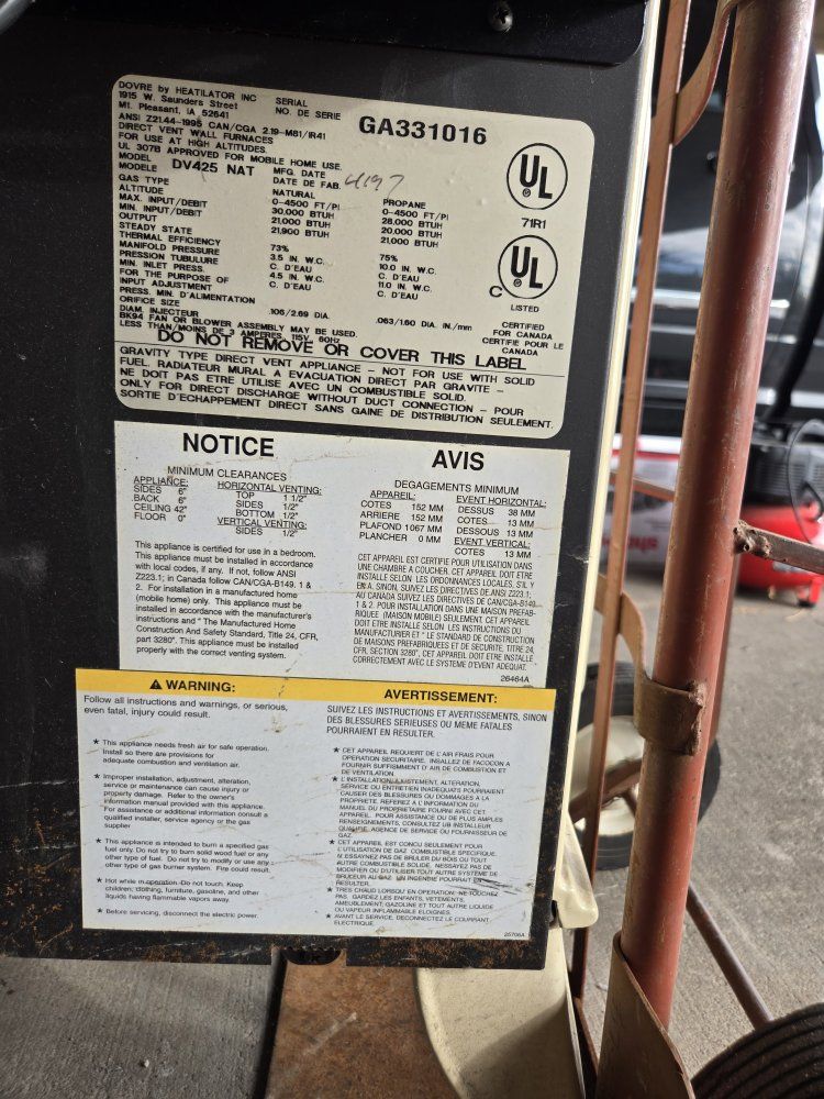 Dovre by Heatilator (Model DV425). I have no way to verify that it works. There are a few chips, $300