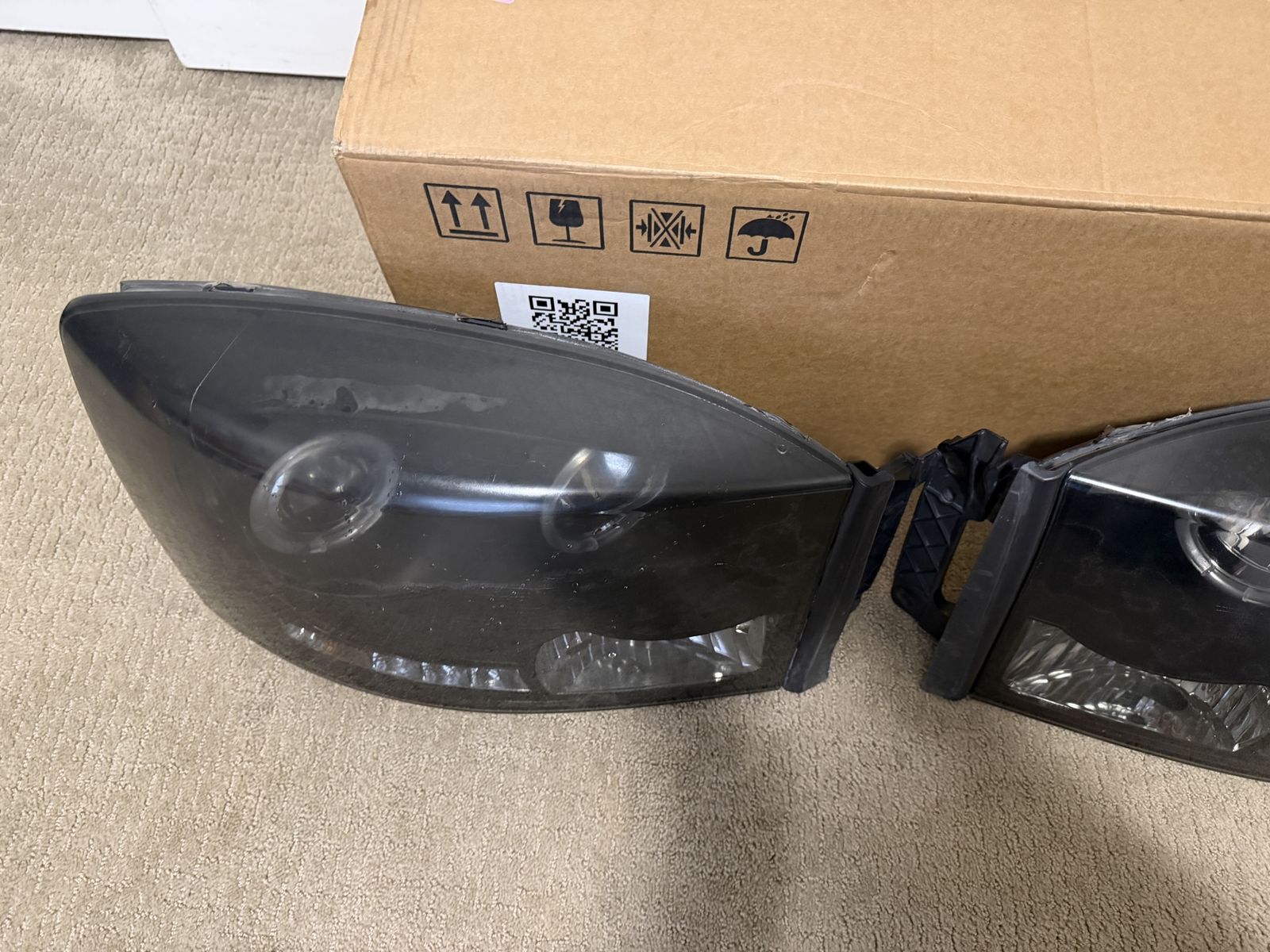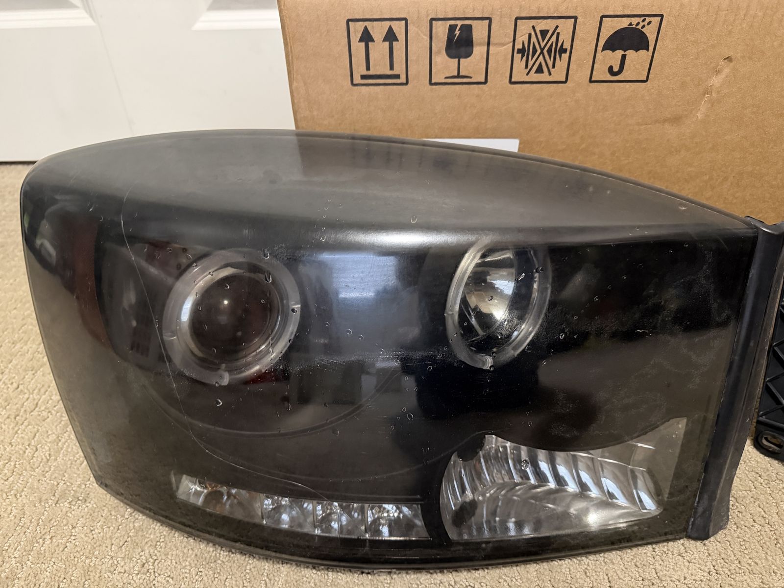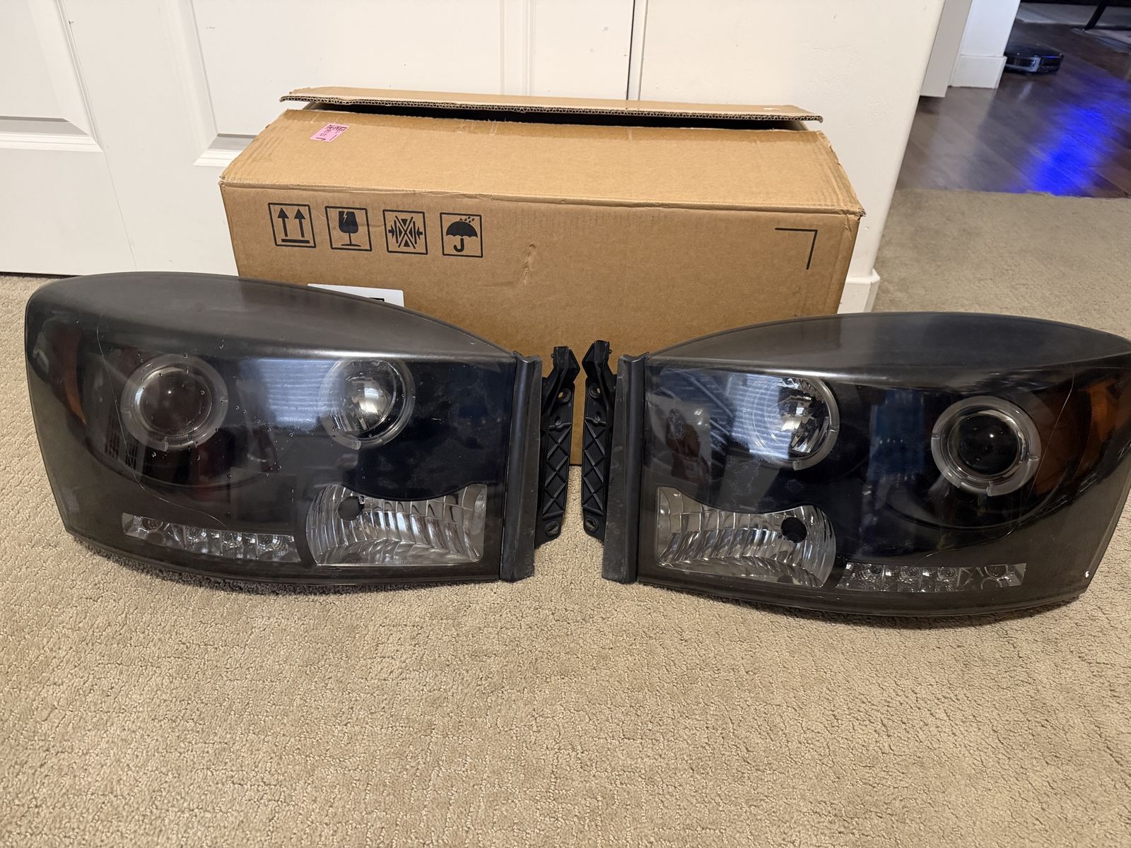 VenmoSpyder headlights for a 07-09 dodge ram 3rd gen will fit 1500 2500 3500 the condition is ok not great can be polished to clean them up there is a leak on one of them you can just re silicone it should be good will throw in some extra led light bulbs asking $40