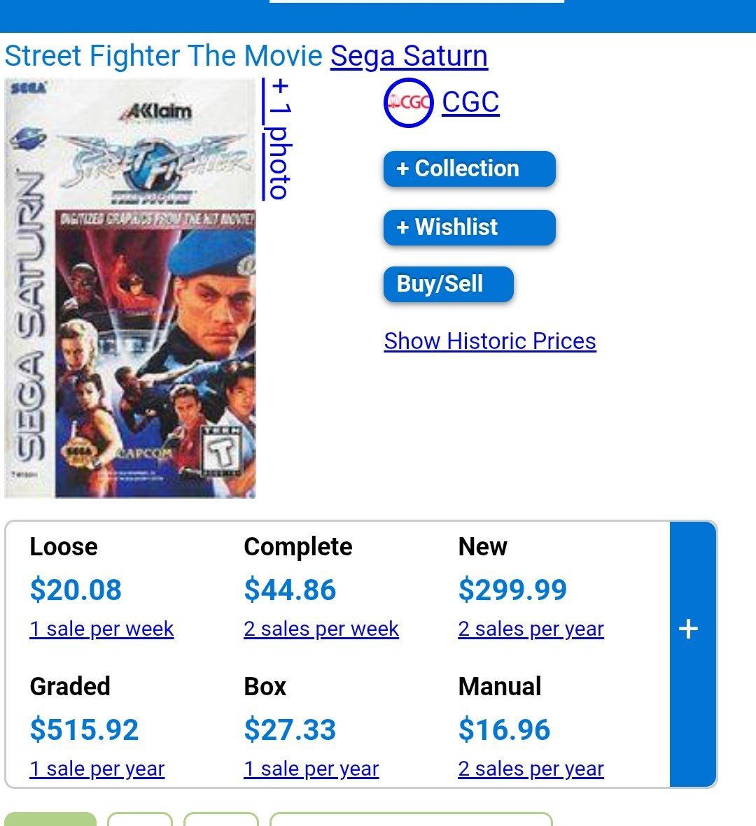 #7 Street Fighter the Movie pricecharting shows $44 will sell for $27