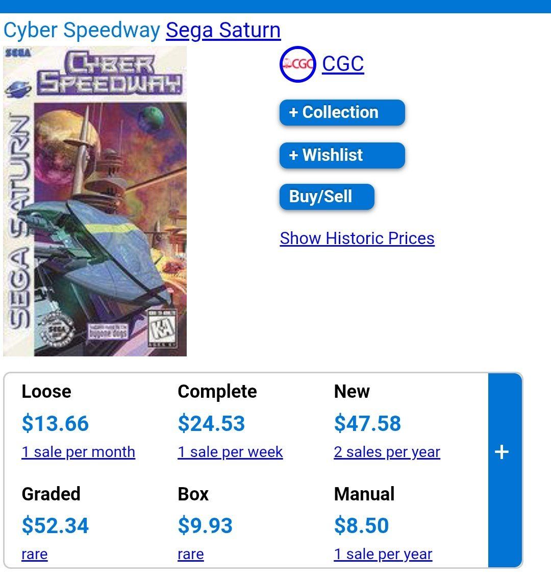 #9 Cyber Speedway pricecharting shows $24 will sell for $15