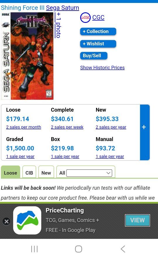 Sega Saturn Collection below price charting prices. Selling as I just don't have time for them anymore and I have been cutting down my collection. Most of these have never been ported to another console, including one of the greatest games ever made Shining Force 3 (if you've played it you know). Also have a hidden gem in Dark Saviour (seriously fun game). Price Charting prices are included in pics so you can see what these games sell for on Ebay. #1 Shining Force 3 (no manual), price charting shows this sales for $340 complete, will sell for $200