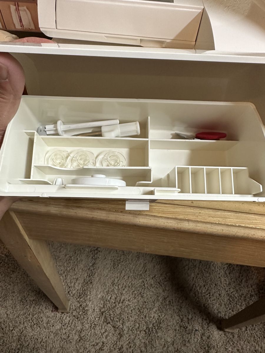 Purchased a few months ago, but I've only used a couple of times. Embroiders very well. Includes everything shown in the pictures. Cash and local only