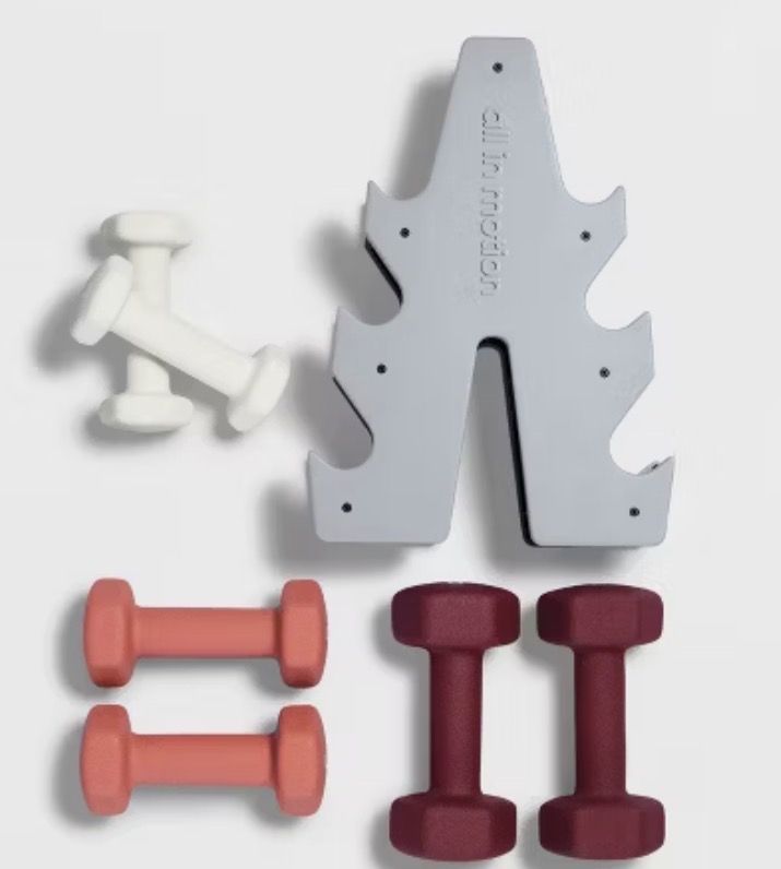 Made for: exercising, at-home fitness Moves with: no slip design Must-have features: stand for storage Includes 6 weights and a stand for easy storage