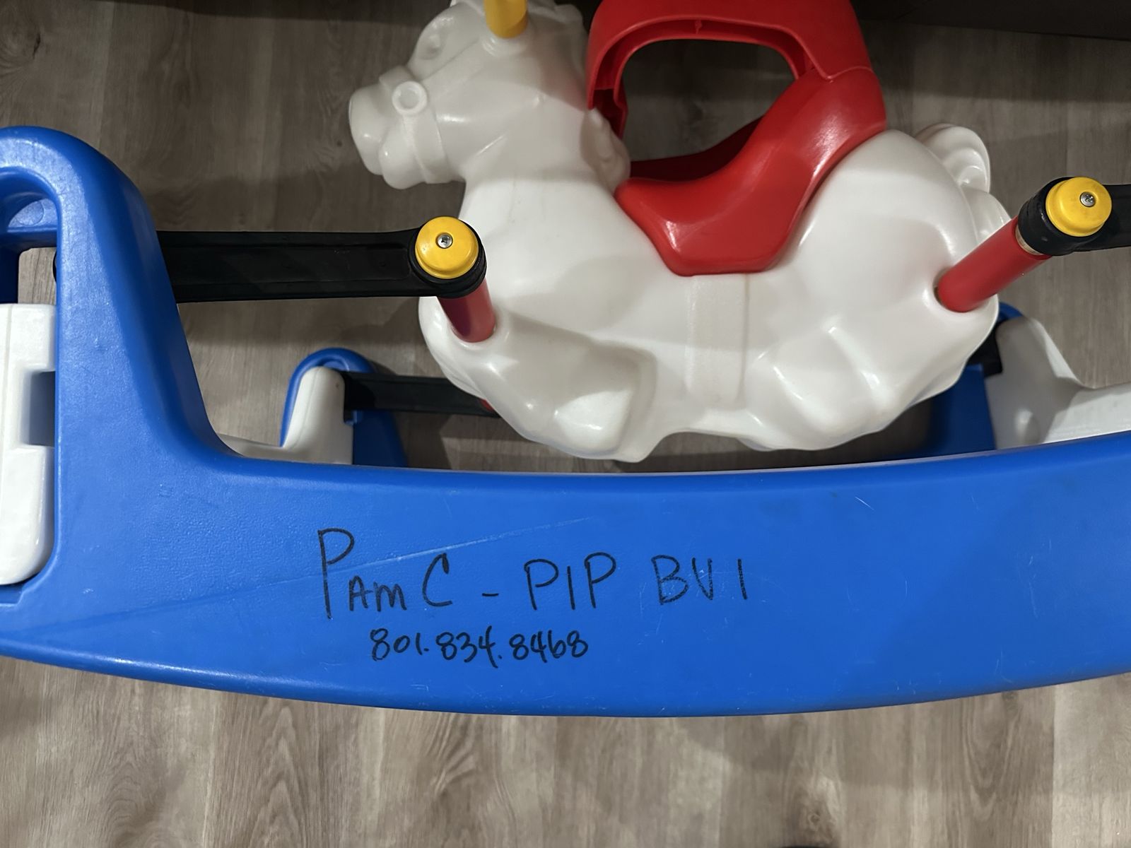 VenmoToday’s kids rocking horse, does have writing on the side. We are moving and have no room for it.