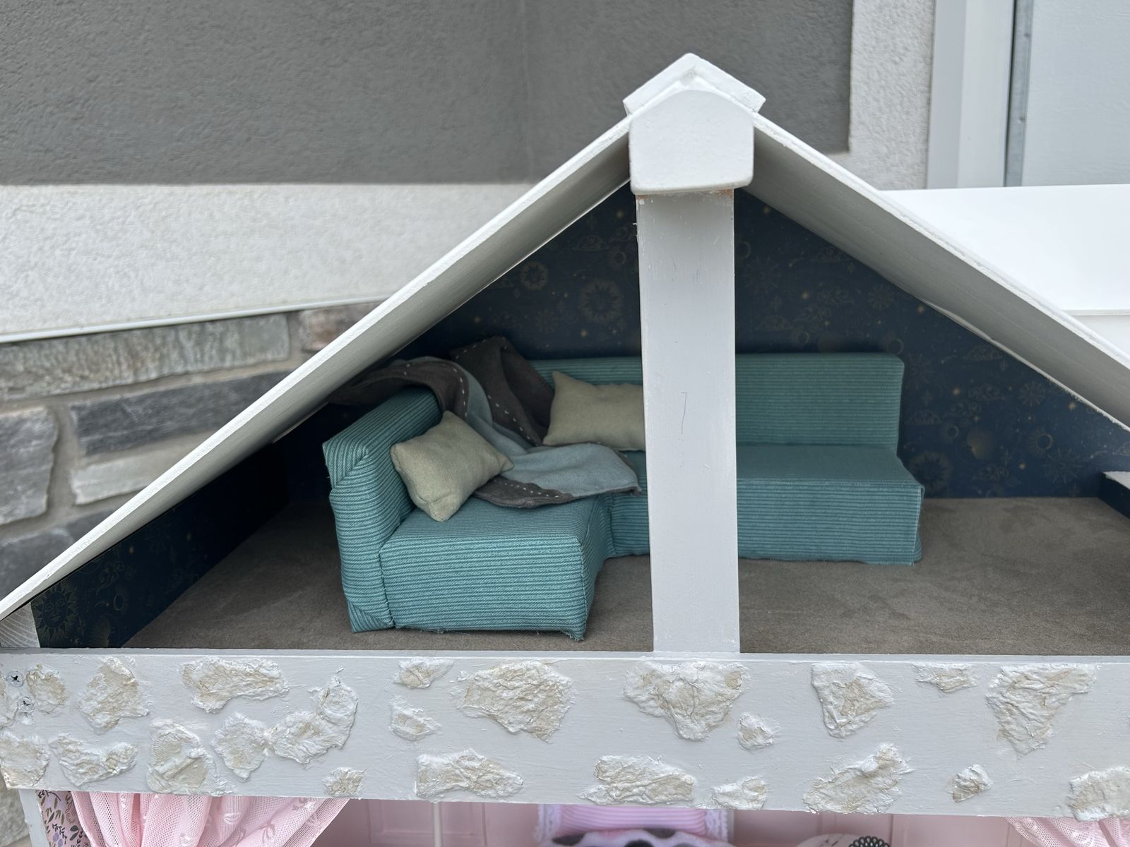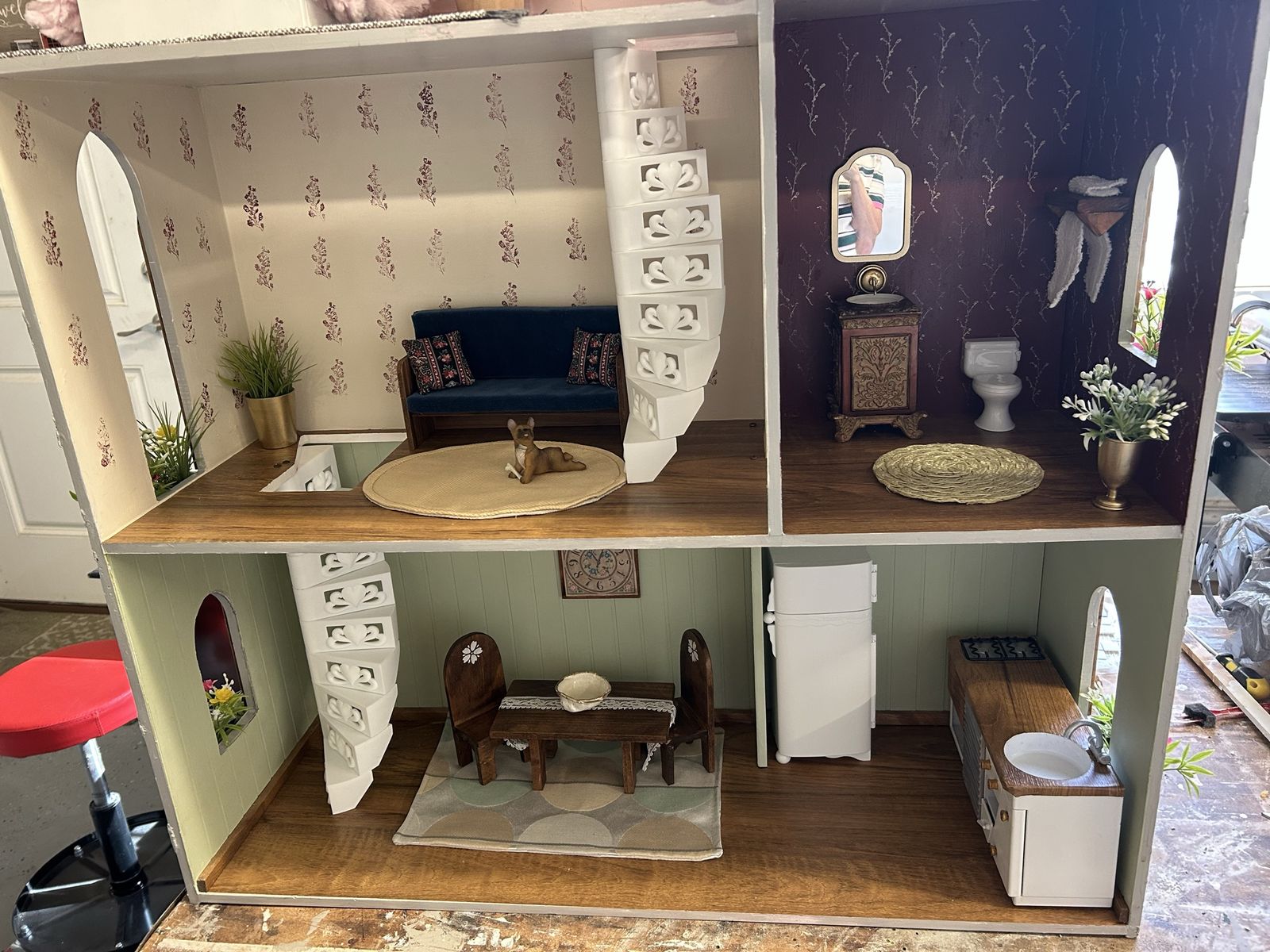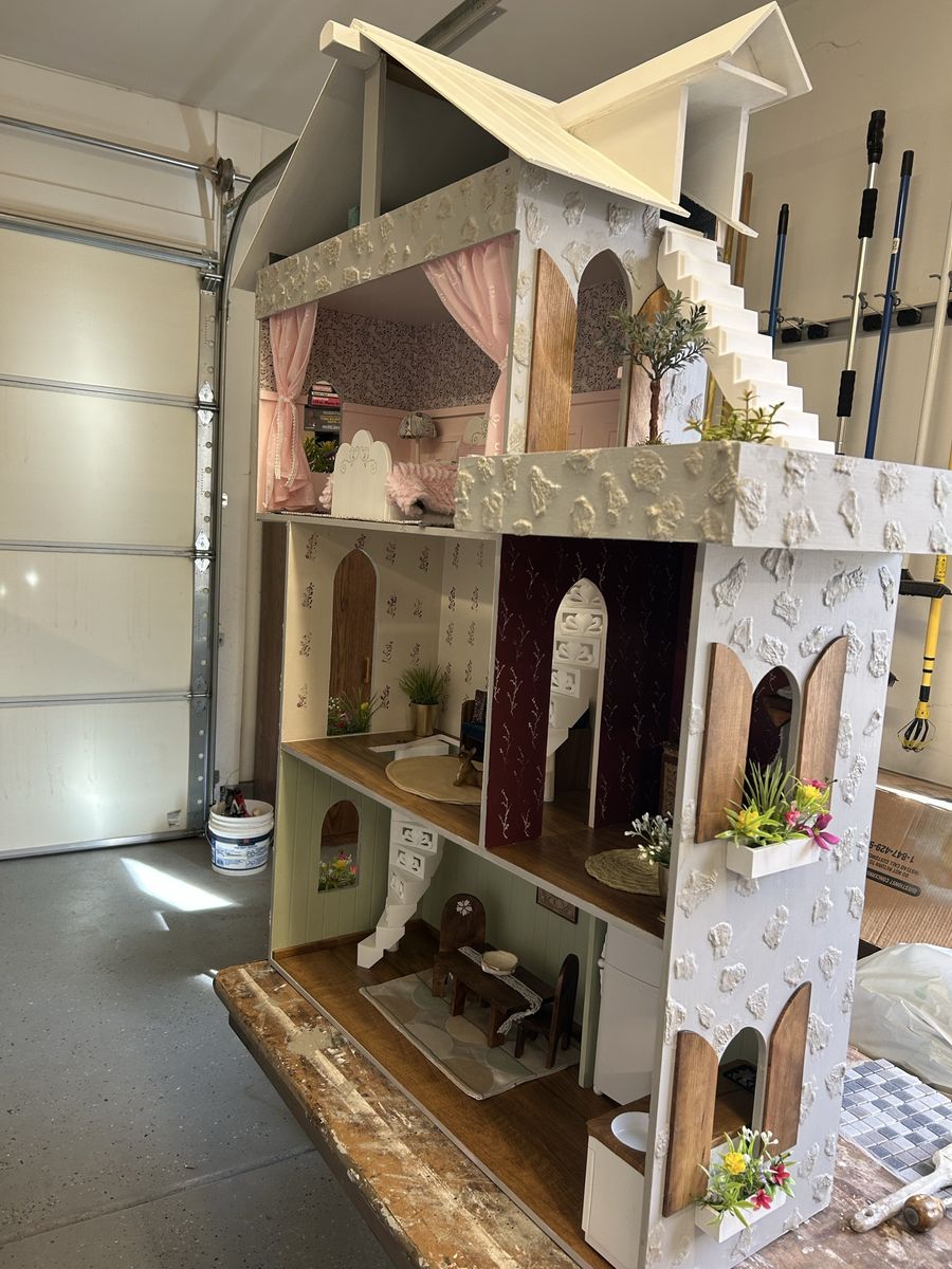 ApplePayLarge amazing dollhouse that is 43” wide, 52”tall. Each room is unique and there are many handmade pieces of wooden furniture. So many hours put into making this a magical play place, and hoping it will get used and loved.