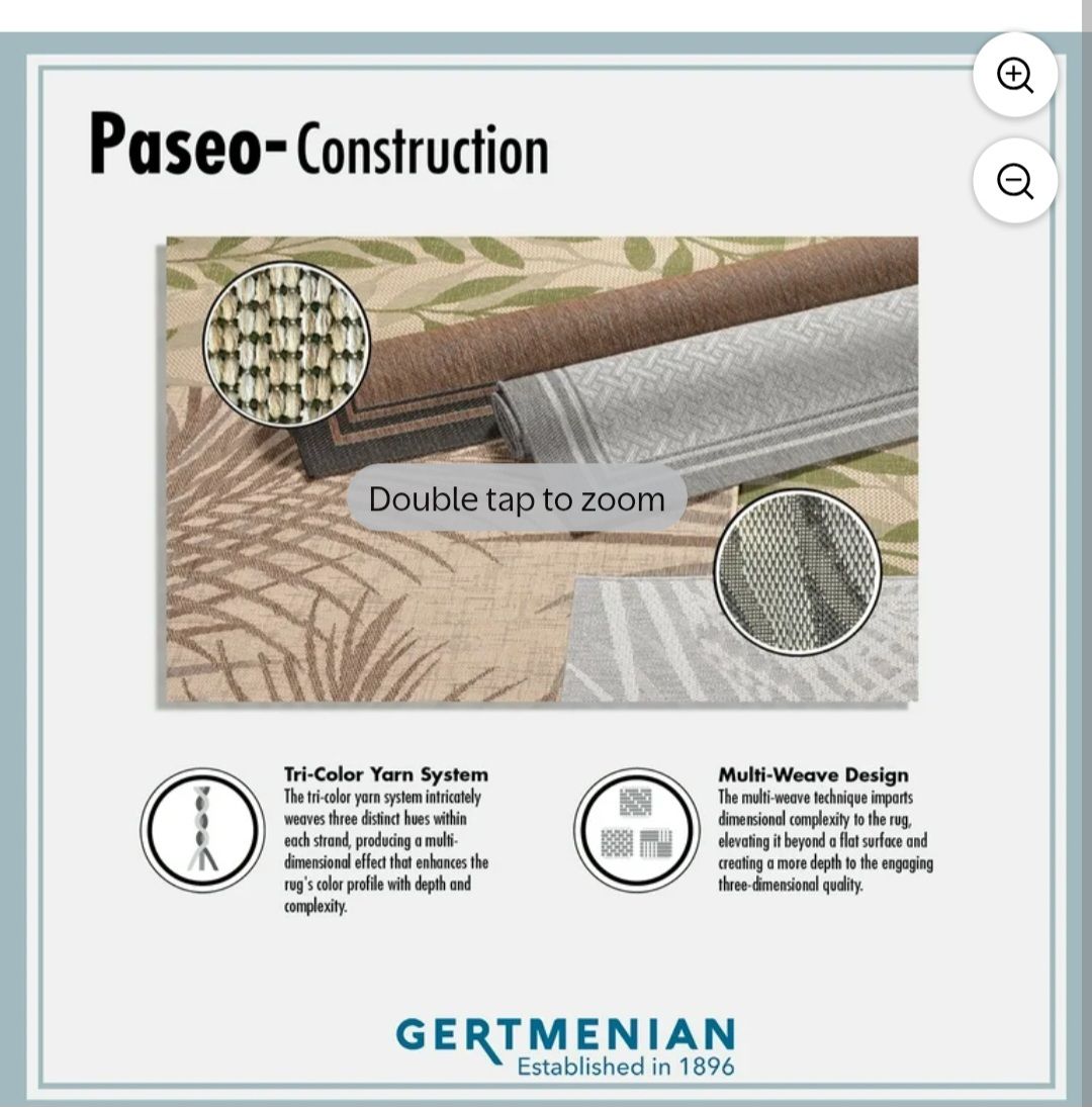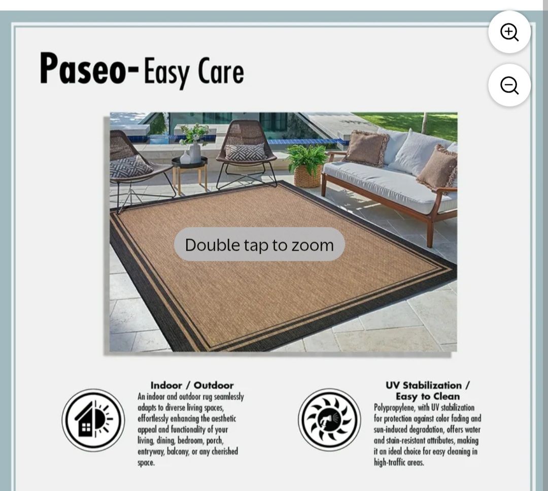 PayPalNEW Paseo Paume Sand/Havana 6 x 9 ft Indoor/Outoor Area Rug. 100% polypropylene, 100% Olefin yarns that are UV stabilized to resist fading. Stain resistant and easy to care for. Retail $109. Draper.