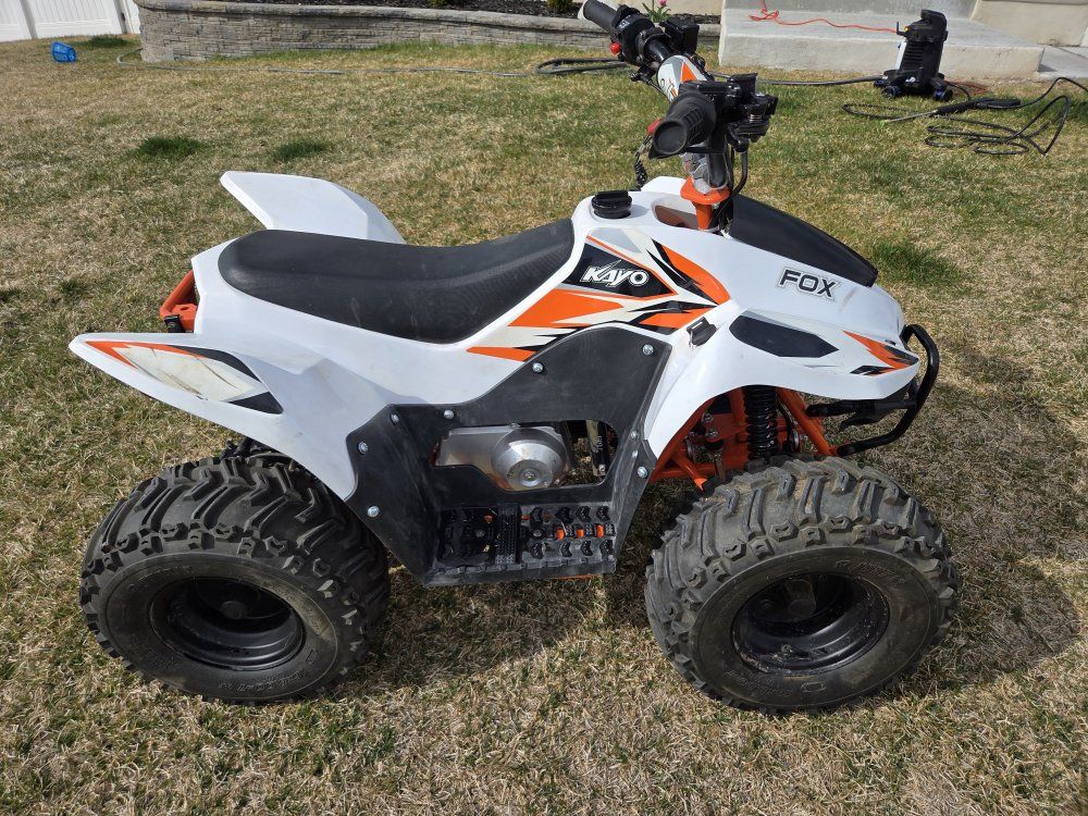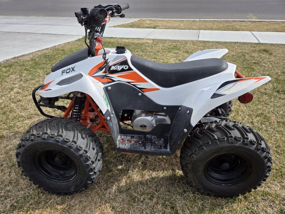 KAYO Fox 70cc ATV in great condition—perfect beginner quad for kids. Features an automatic transmission, electric start, and smooth, reliable performance. Includes a throttle limiter and a parental remote that can shut off power for added safety. Upgraded with LED headlights and a different front sprocket for improved low-end power. I have the original sprocket that will be included as well in case it is something that you want to change back. Well-maintained and ready for fun!