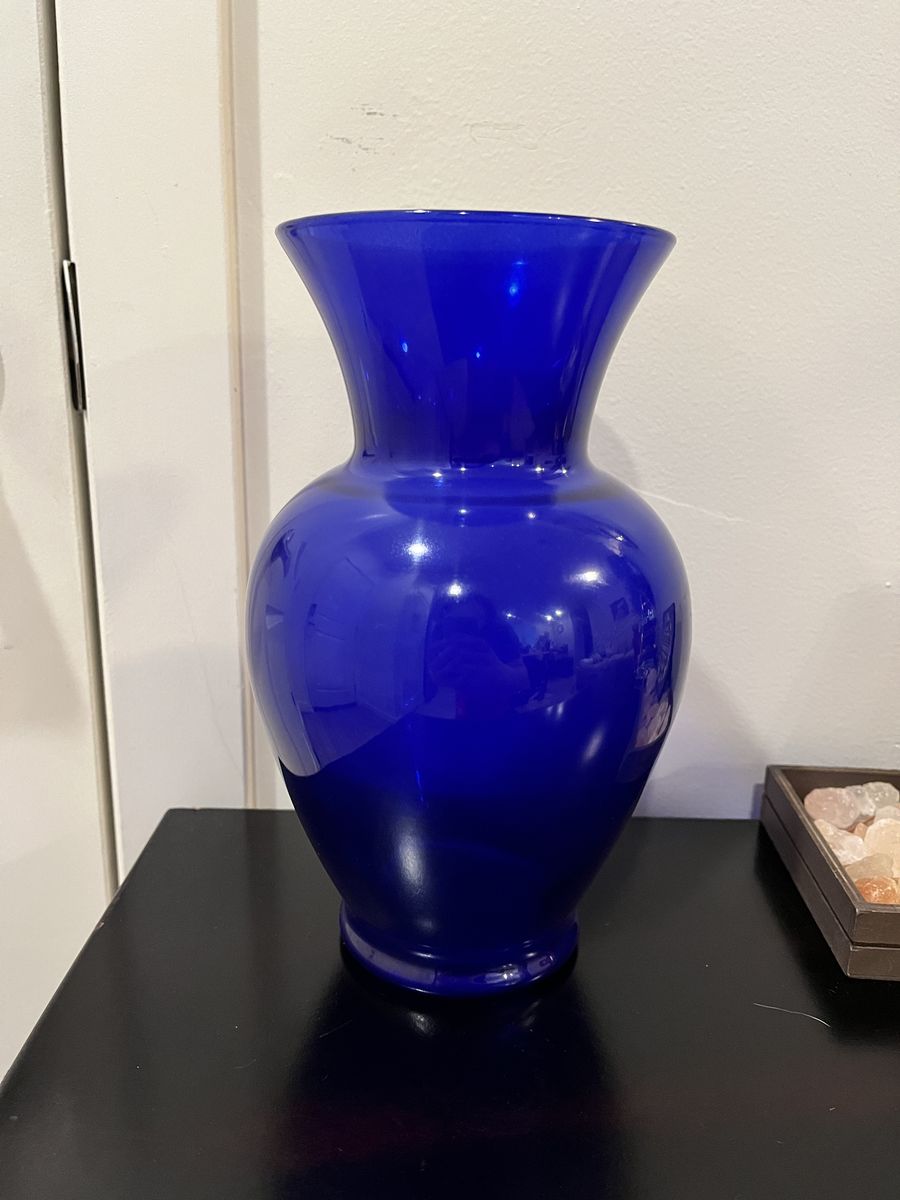 GooglePayI’m letting go of this pretty cobalt blue glass vase, perfect for Spring. It has such a rich, deep blue color and looks beautiful with fresh flowers or even just sitting on a shelf. The opening is nice and wide (4.5”), and the rounded base is about 5” across.