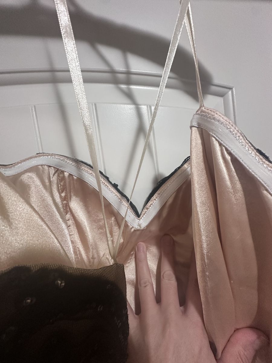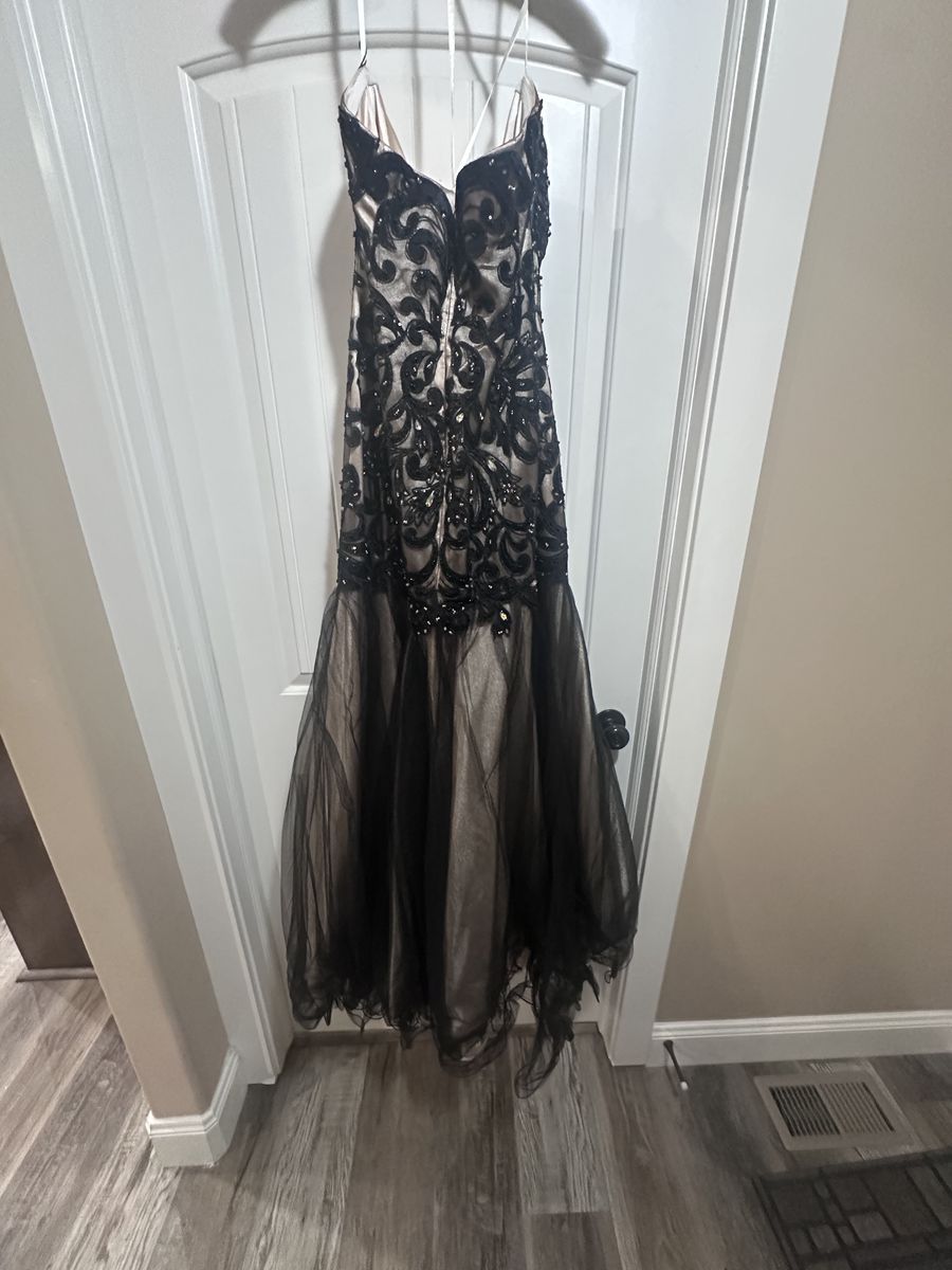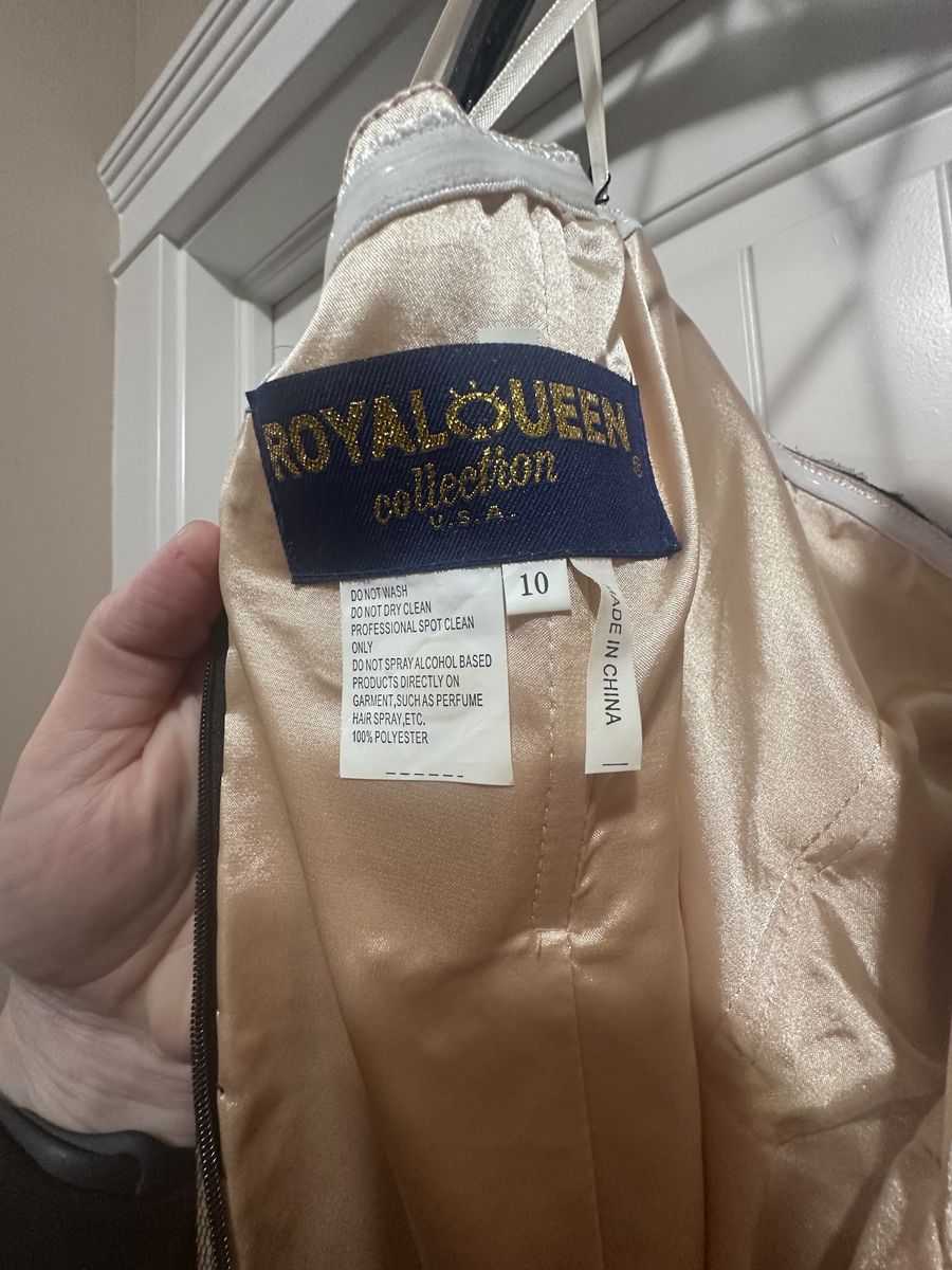 VenmoSize 10 purchased from Bliss department store in New Gate Mall about 10 years ago. Zipper works fine and no issues with dress as it is in great condition. Had rubber inner lining around the top to help keep it from sliding down. Wore one time for an event and never used since.