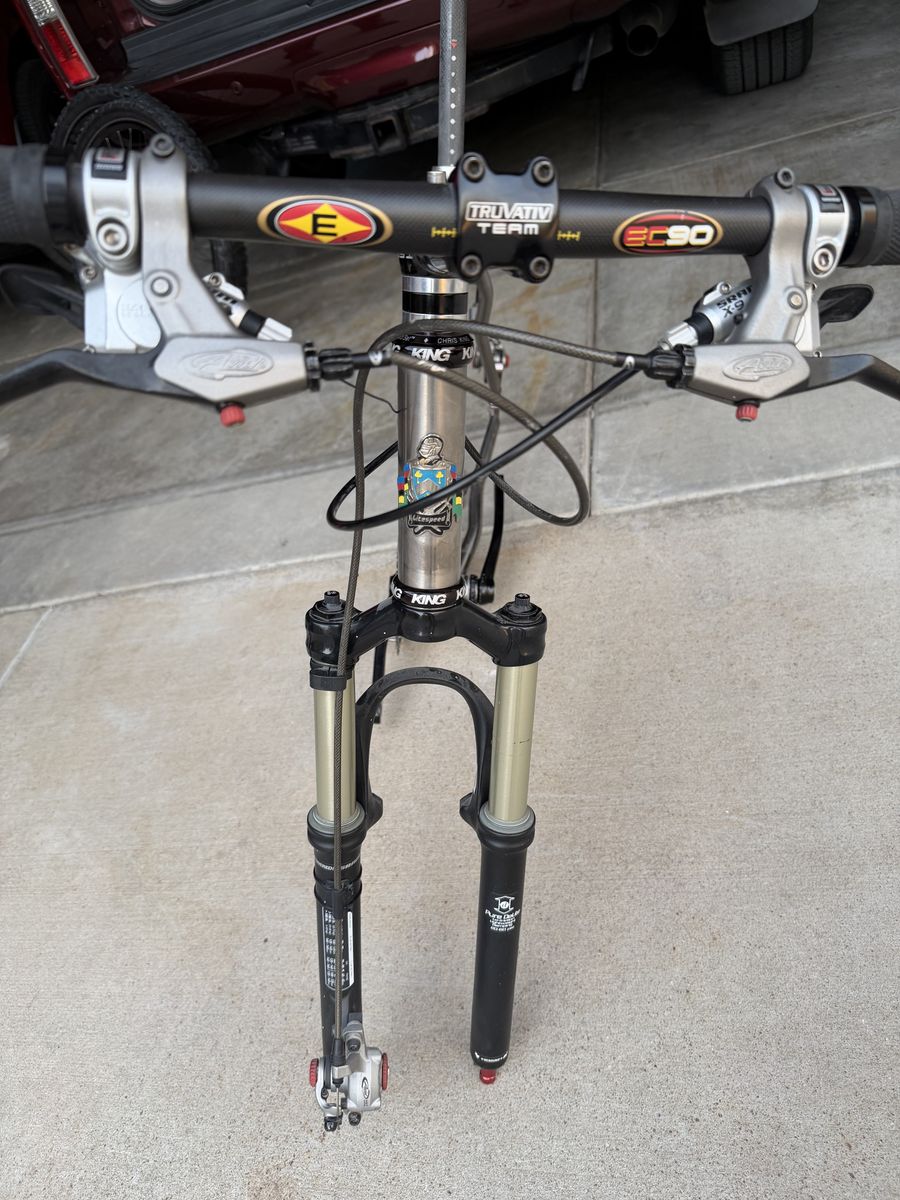 Condition: The frame is in beautiful shape with no dents or structural issues. Being titanium, the finish can be easily buffed to a factory shine if you're a collector, but it looks great as-is.