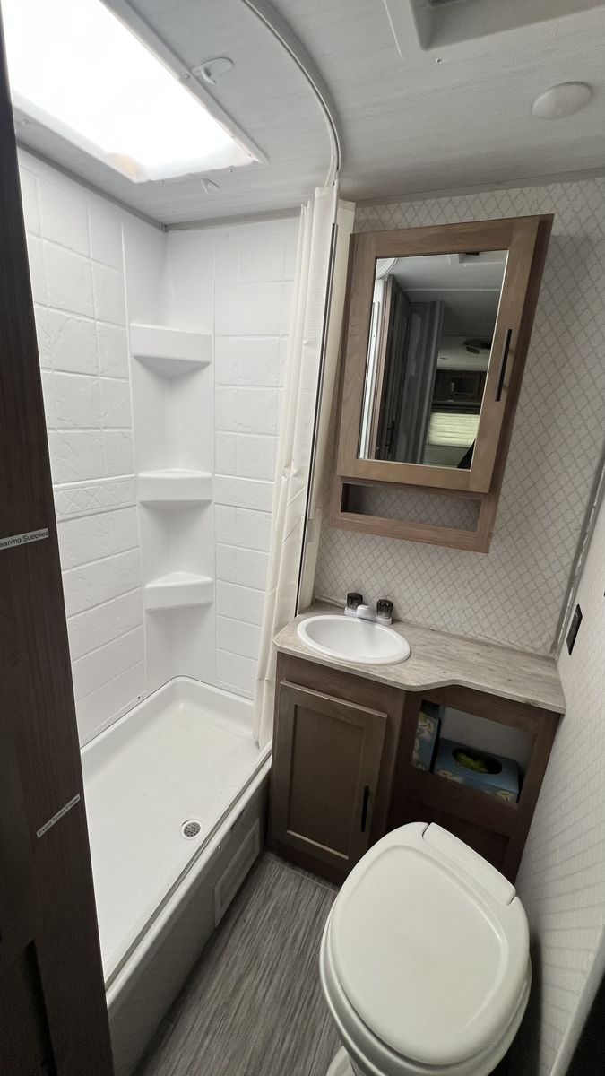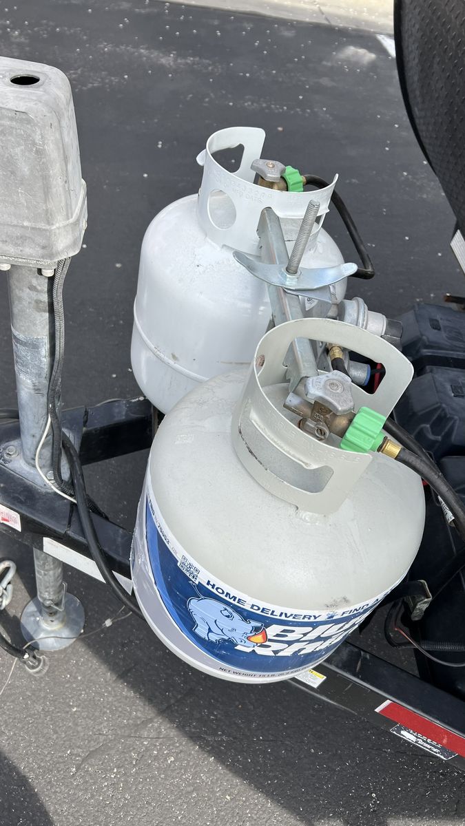 Solar panels keep 2 BRAND NEW batteries charged while away from civilization. Comes with 2 propane tanks, adding to the camper's utility without having to refill them constantly. Equipped with the cold weather package, allowing for longer seasonal use and peace of mind that your water tanks won't freeze. The entire structure is reinforced and built on BRAND NEW framing and foundation, which is stronger than the manufacturer's.