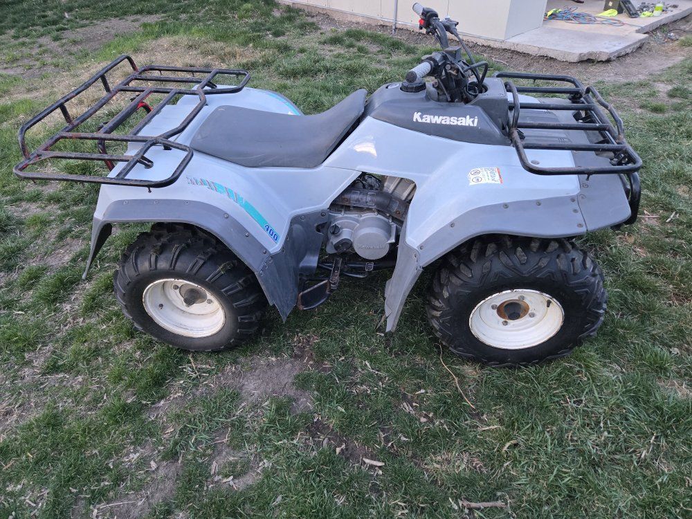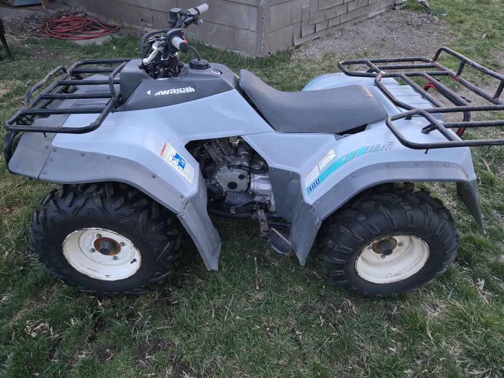1994 kawasaki bayou 400 4x4. It's in really nice shape it just had the oil changed and a tuneup. It also just had brand new tires put on it. Asking 1800 obo. No title Bill of sale only