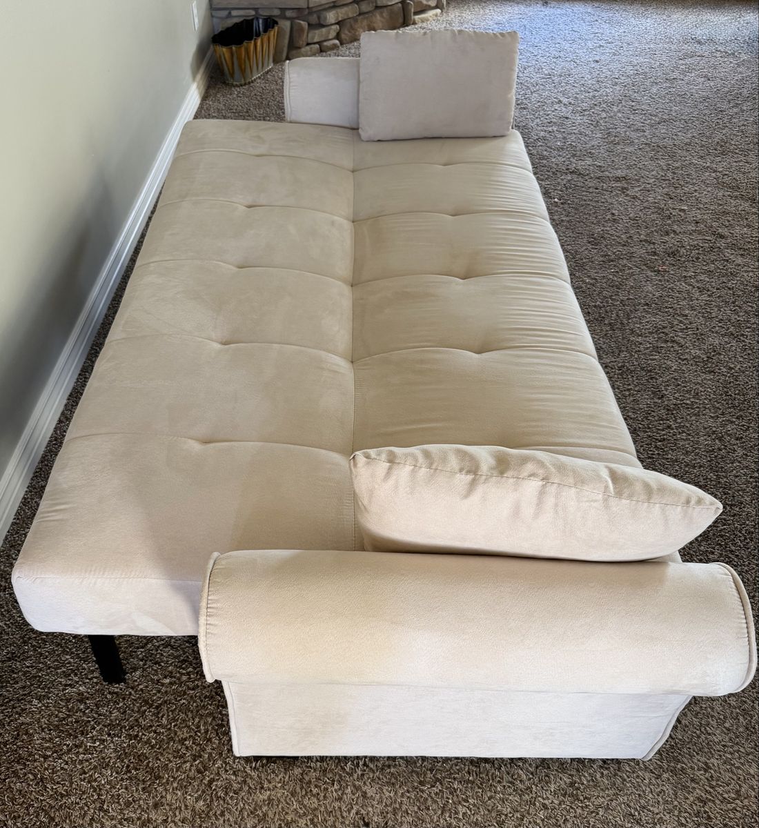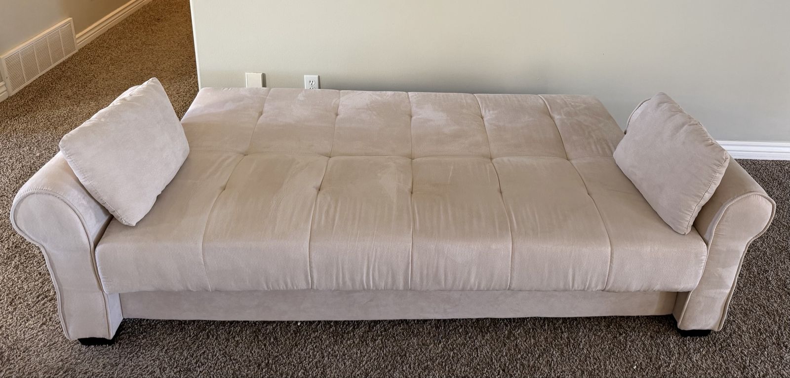 This futon has been barely used and is in excellent condition. Upholstery is clean, firm, and comfortable. Folds flat easily to create a guest‑ready sleeping space. Perfect for apartments, offices, guest rooms, or cozy living spaces.
