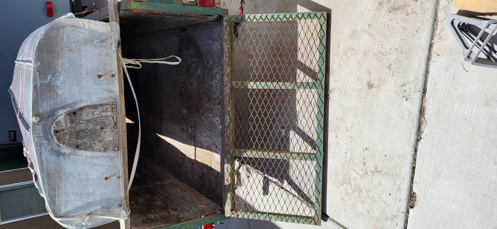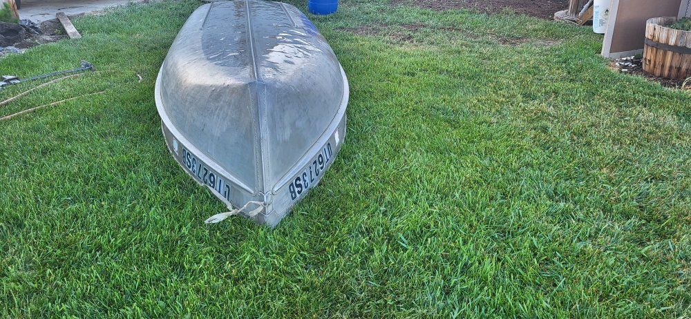 Small boat with anchor, older life jackets, and utility trailer. Trailer was good for cooler and gear. We thought of putting a roof top tant on the trailer. Measurements are in the pictures.