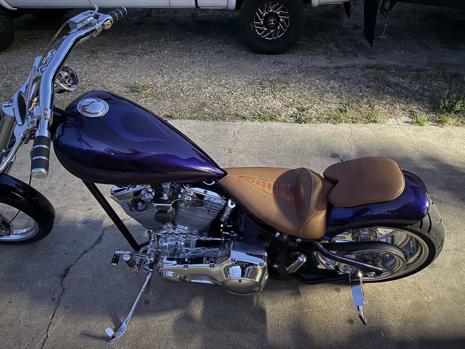 This bike is a blast. It’s a custom built chopper out of Fort Lauderdale, Florida it was completed in 2012 it has a 113 CI S&S with a super E carb 1.5 in enclosed belt driven dry clutch to a baker 6 speed short drag pipes a 250mm rear tire custom paint, and leather work for both seats. It does have a passenger seat and pegs. this bike is a blast when I bought it the owner used it as a display hence the low mileage. just getting out of motorcycles. $12,000 obo