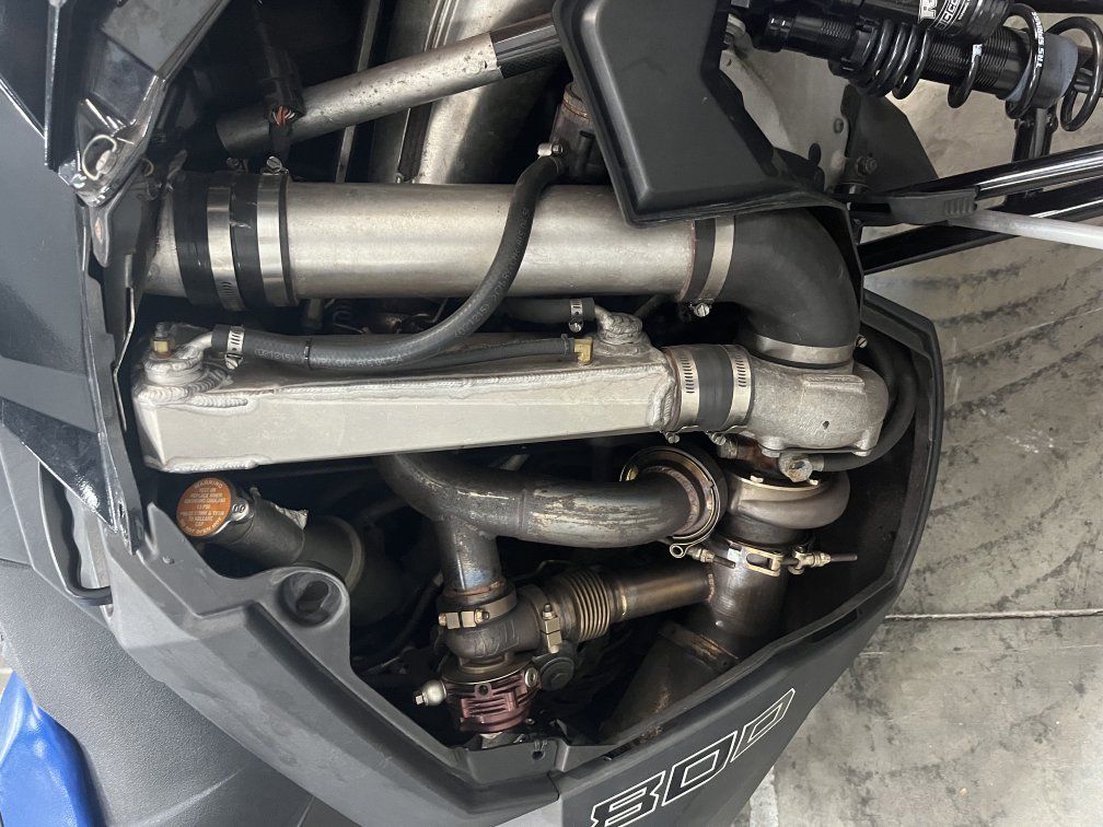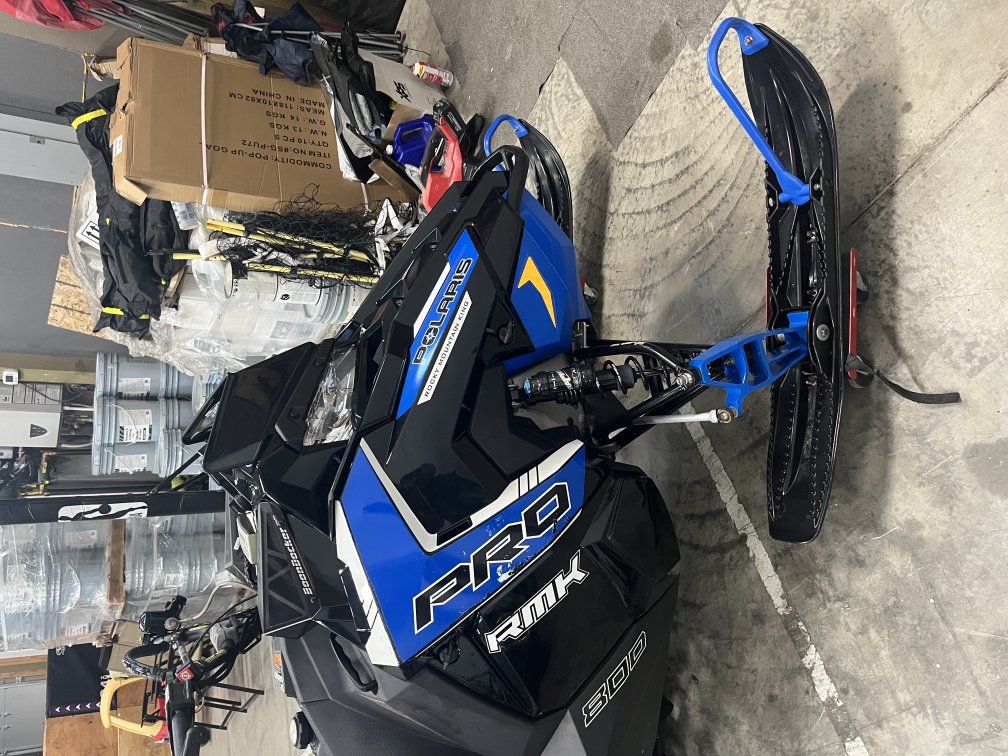 2016 Polaris rmk 800, boondocker sidekick turbo running 8 psi of boost with intercooler and boondocker cold air intake. 163" track. Has all Raptor shocks and KMOD 37" A-arms. Chassis has 2526 miles. Motor and boondocker turbo kit have 851 miles. Track has no missing lugs but some have chunks missing and tears. Plastics are in good shape besides wind screen and panel infront of right knee is cracked.