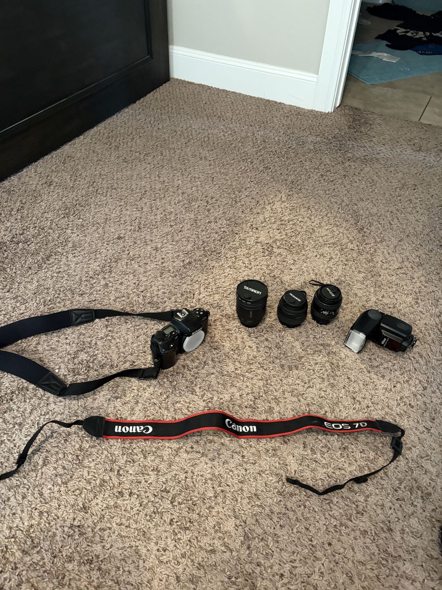 VenmoFilm camera. Comes with flash, backpack, camera, 3 lenses, 2 straps, extra film and extra batteries