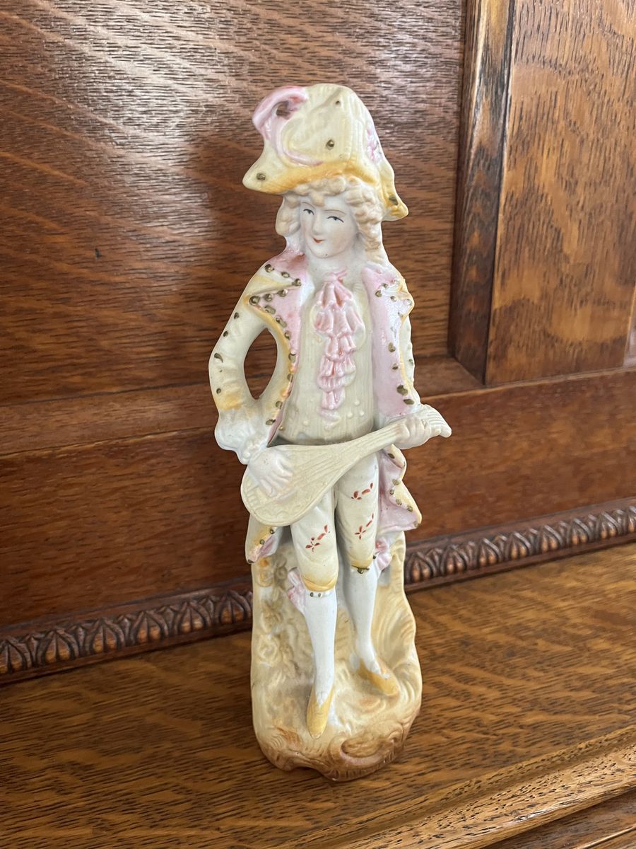VenmoStunning romantic couple in excellent condition. The colors are vibrant and the detail on them is truely remarkable. They are marked L&M Inc. Which is Lipper and Mann. I believe these are from the 1950's. These are 8 1/2 inches tall. Simply gorgeous! Selling to help a parent. Price is firm.