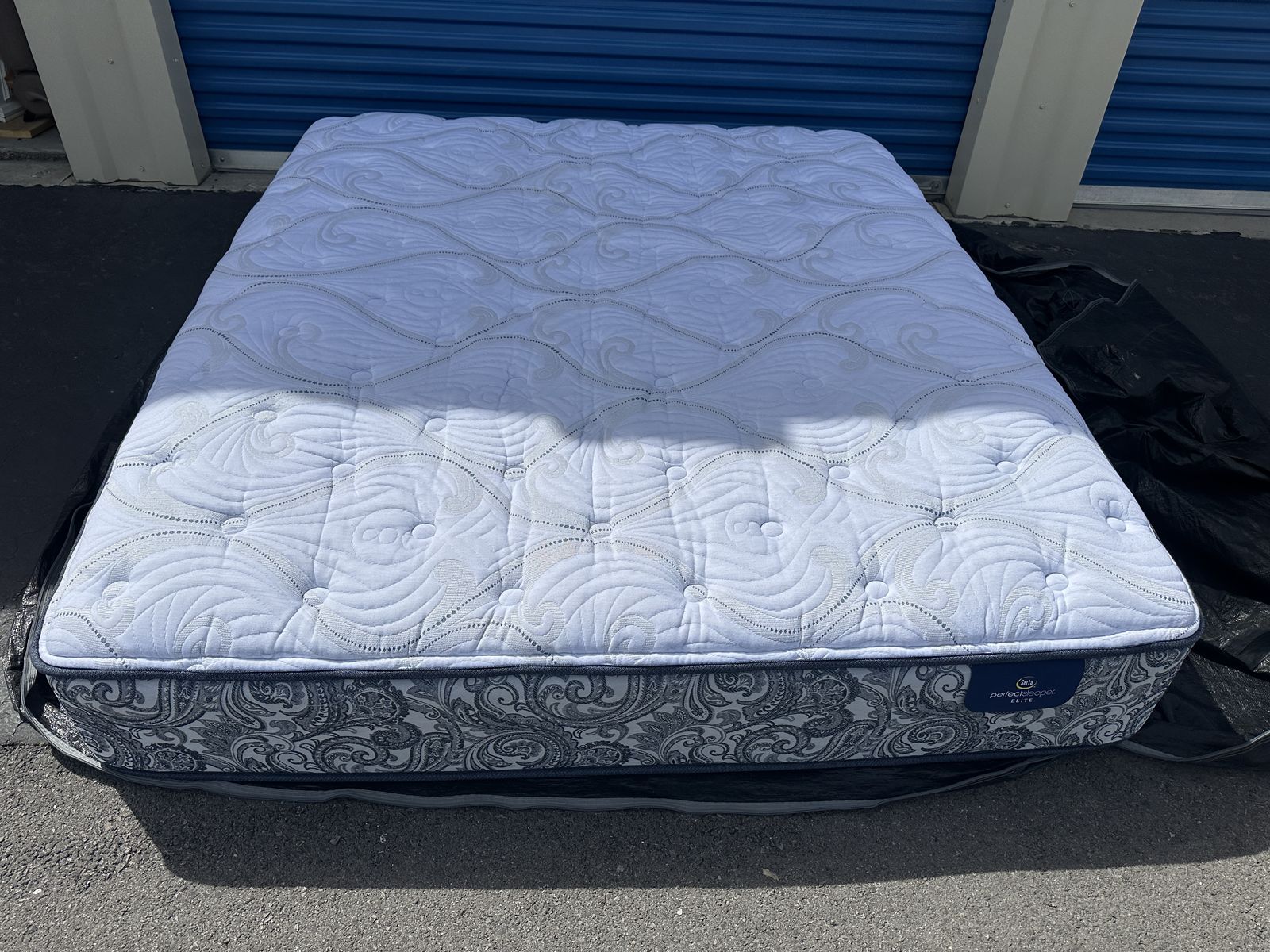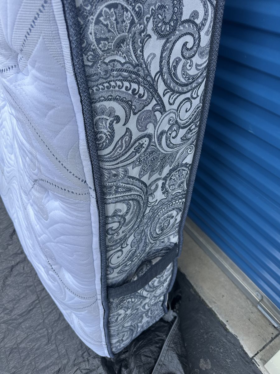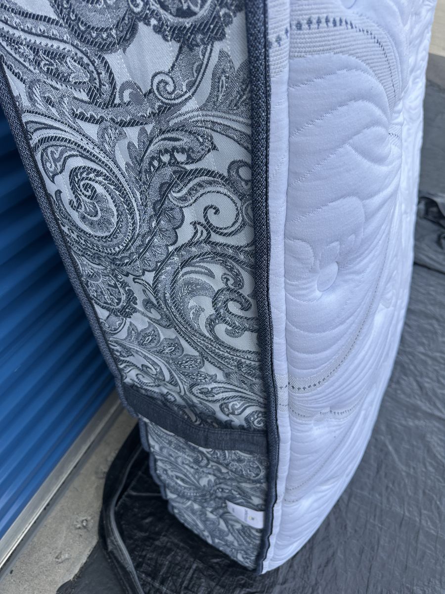 Check out this 13” Perfect Sleeper Elite king mattress. Overall, it is in excellent condition. There are some noticeable signs of imperfections, some of the material is worn through on the back from a moving mishap, a tiny non noticeable water stain on the front, some signs of use, etc.