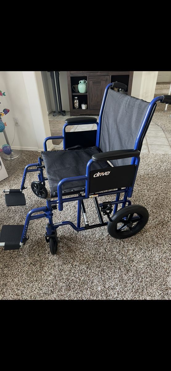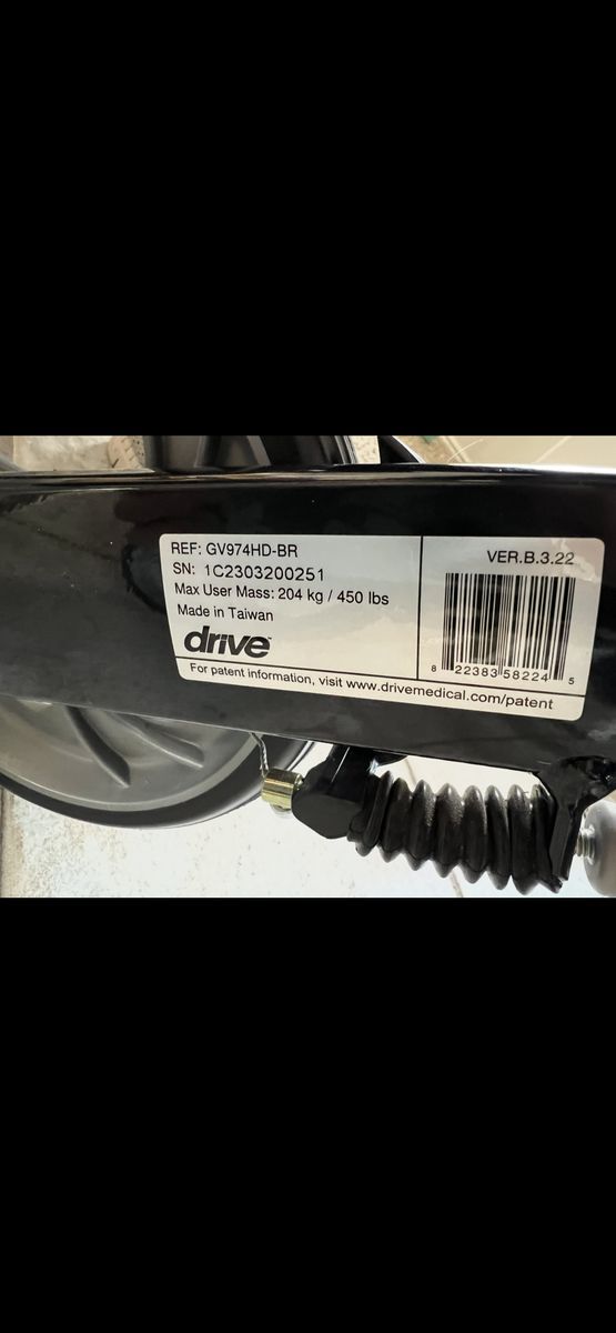Heavy duty Reinforced upholstery with back carry pouch Weight capacity 450 lbs Seat width 22” Swing away leg rests