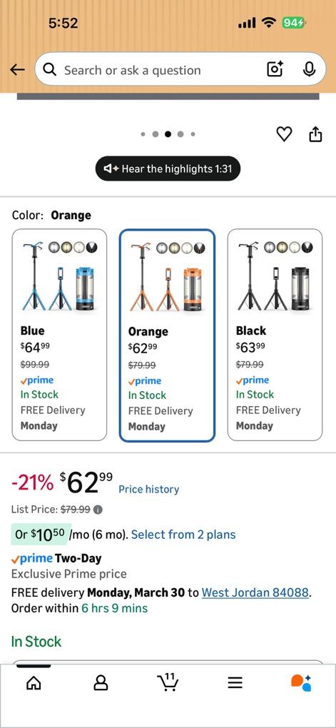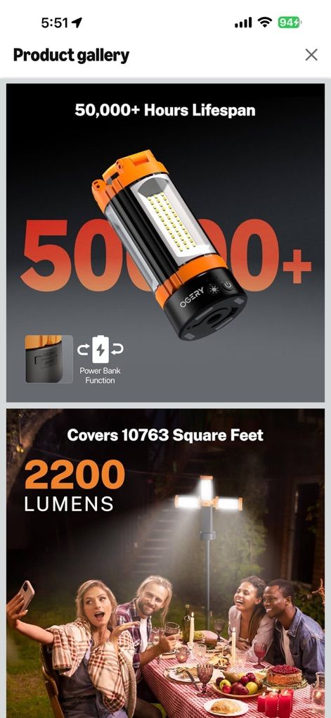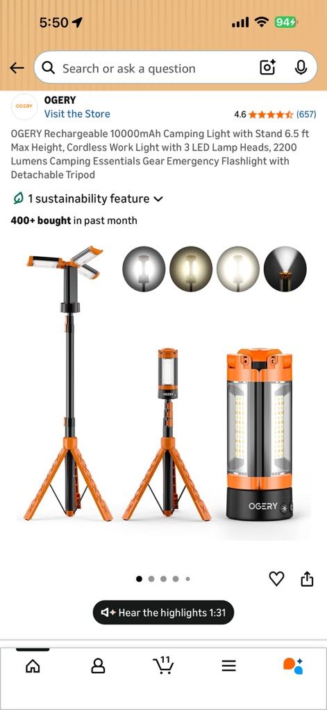 VenmoHi I’m selling an Ogery rechargeable LED camping light. It’s brand new. Still have the box. I bought it to use for camping, but can also be a work light. It comes with a tripod stand, but also has a magnetic base and a hook to hang it. It has four light settings and can also be used as a power bank to charge your phone or other devices. On the stand it can be 6.5 foot tall. You can search it up on Amazon to get more specs. Asking $50 cash or Venmo. It’s on sale right now on Amazon for $62 normally $80. Message me if you have any questions. Thanks!