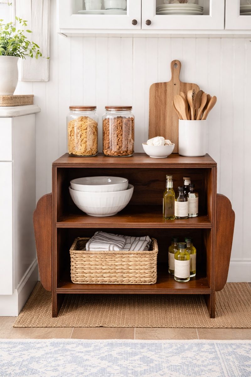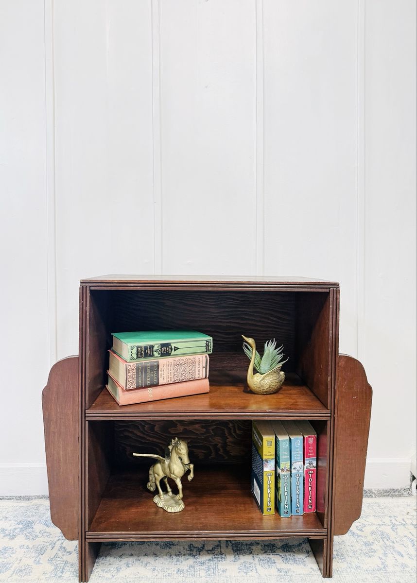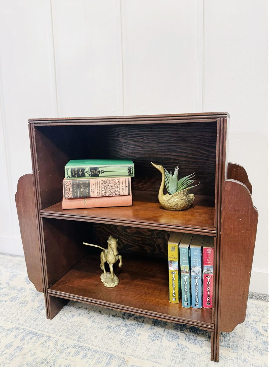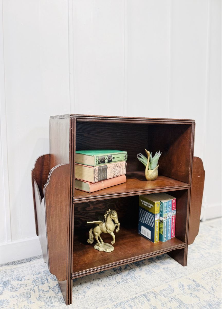 VenmoThis 2-tier bookshelf was originally designed for books and magazines and remains incredibly versatile today—perfect as a compact bookshelf, nightstand, kitchen storage piece, or accent for a cozy reading nook. There are two side slats on the left & right side for additional storage. Would be great to use as bookshelf, nightstand, shoe storage or even in the kitchen.