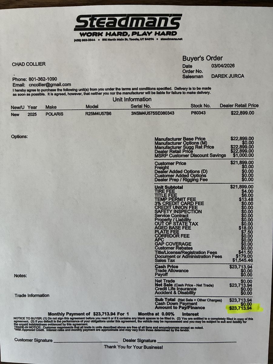 I am selling a like-new, garage-kept, fully enclosed side-by-side purchased in March 2025. Primarily used on roads, the unit includes a heater, windshield, wipers, winch, mirrors, and an unused plow, offering a $4,000 savings over a new model.
