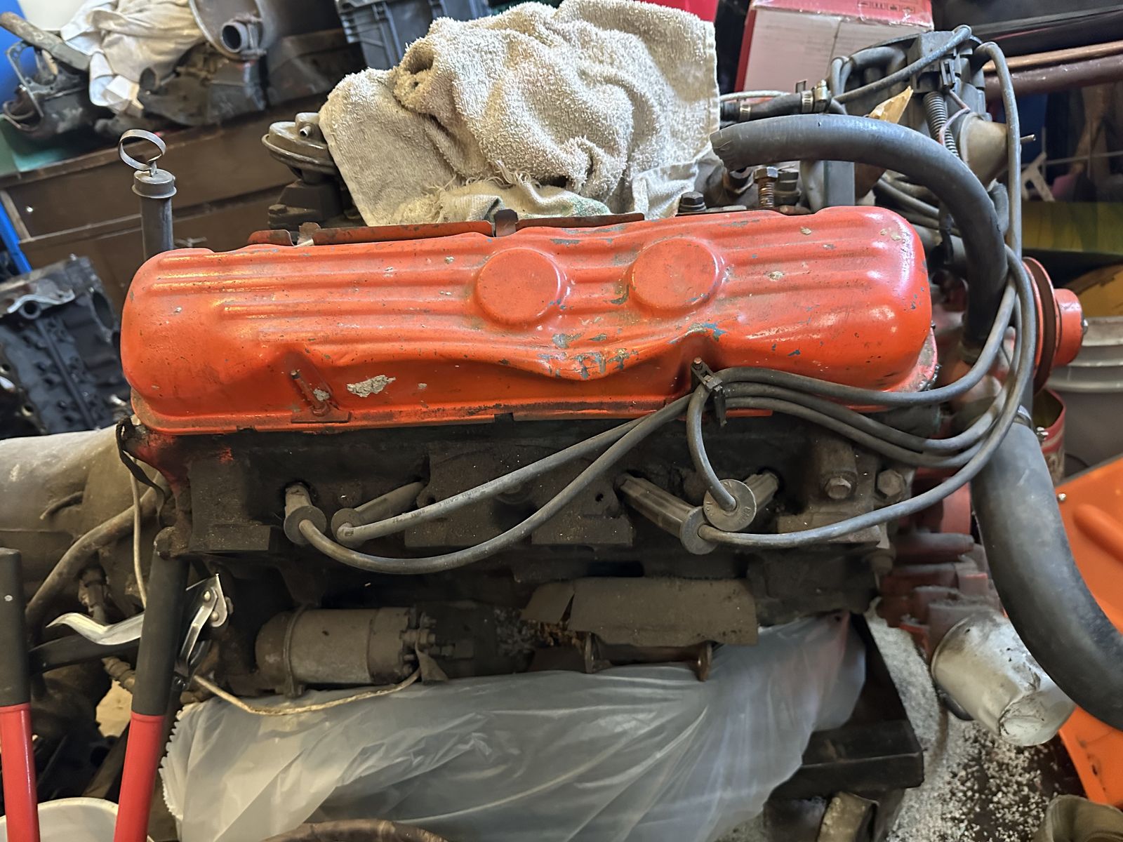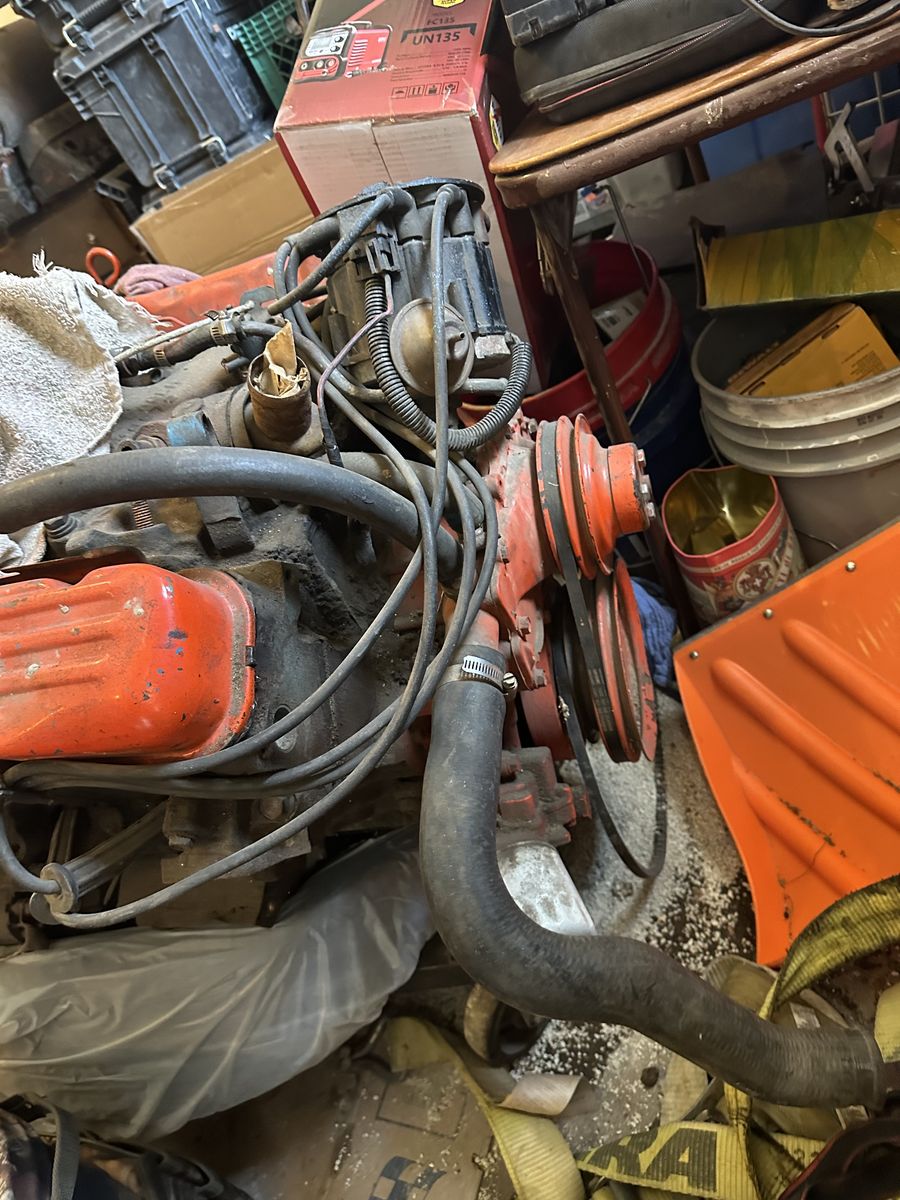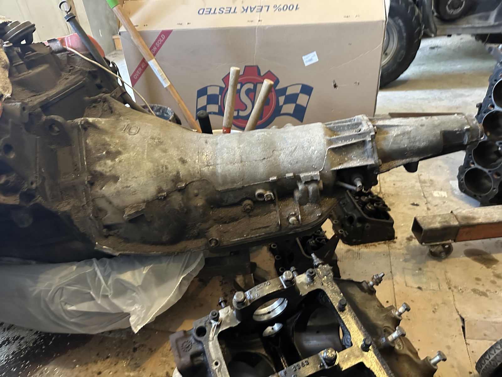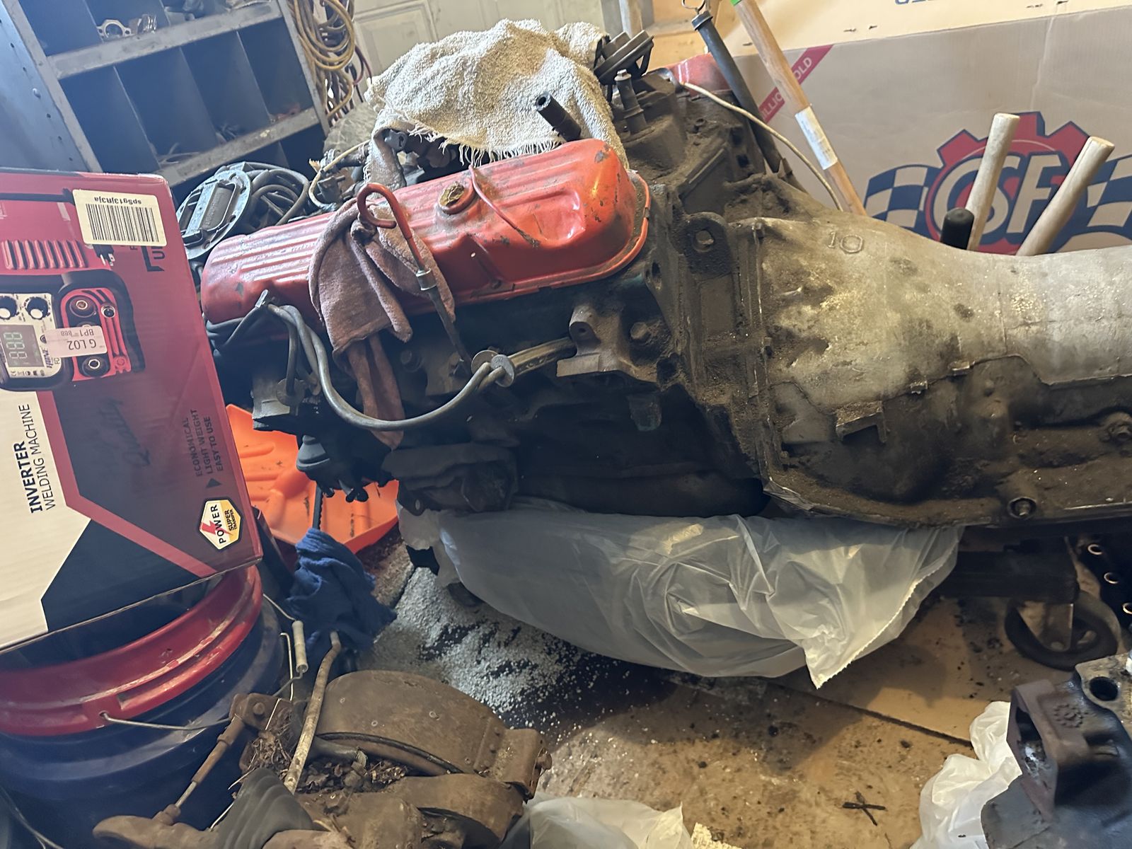 Mostly complete Buick 455 with automatic transmission. Was told it ran when it was pulled. It is missing the exhaust manifolds. Decided to go a different route.